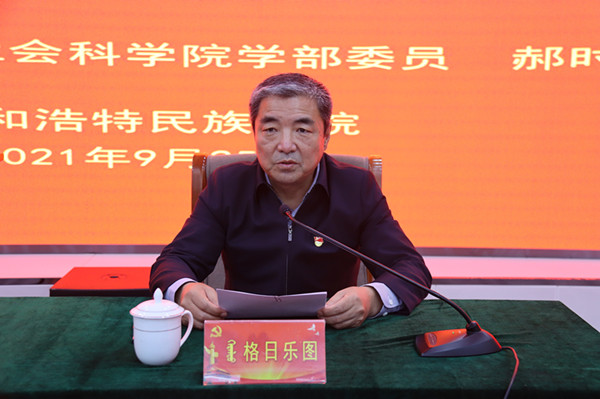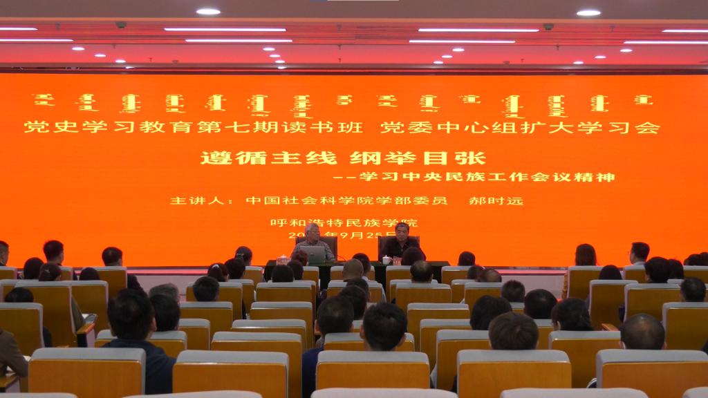 在全面开展党史学习教育之际,为深入学习贯彻习近平总书记在中央民族工作会议上的重要讲话精神,9月25日下午,365英国上市公司以党委理论中心组扩大学习形式举办党史学习教育第七期读书班,邀请我国著名的民族学家、中国社会科学院学部委员、中国人类学学会会长郝时远教授作了《遵循主线 纲举目张--学习中央民族工作会议精神》为题的专题辅导报告。全体校领导、党委理论学习中心组成员、全体副处以上干部聆听报告。学校党委副书记、校长格日乐图主持会议。