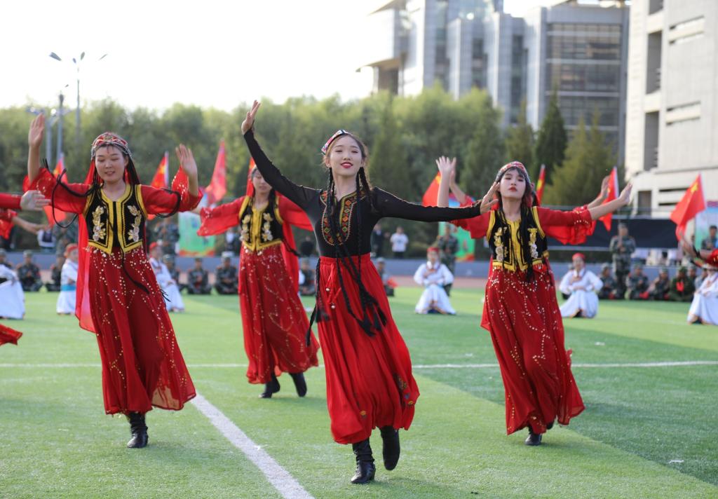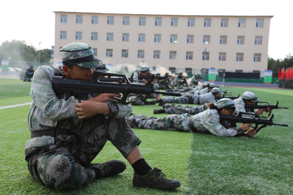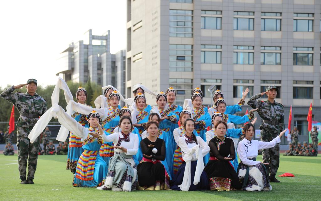大会首先举行升国旗仪式,会场全体肃立,同唱国歌。格日乐图校长下达“开始”指令后,2021级学生军训总结大会正式开始。在学校国旗护卫队的带领下,各方队踏着整齐的步伐,喊着响亮的口号,以饱满昂扬的精神状态列队走过主席台前,展现出365英国上市公司青年学子朝气蓬勃、奋发向上的精神风貌。接着,由2021级新生组成的方队进行了“建党百年”字样展示、擒敌拳、女子匕首格斗术、应用战术、格斗对抗、情景剧、舞蹈等汇演。他们用优美的动作,精彩的展示,震撼全场,催人奋进,赢得现场观众的阵阵掌声。