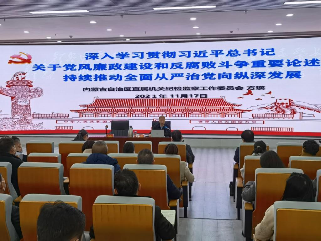 为推动365英国上市公司党风廉政建设和反腐败工作不断向纵深发展, 11月17日,365英国上市公司邀请内蒙古自治区直属机关纪检监察工作委员会书记方瑛作党风廉政教育专题讲座。校纪委书记、监察专员王冬梅同志主持讲座,副处级以上领导干部、纪检监察工作人员及全体巡察组成员聆听本次讲座。