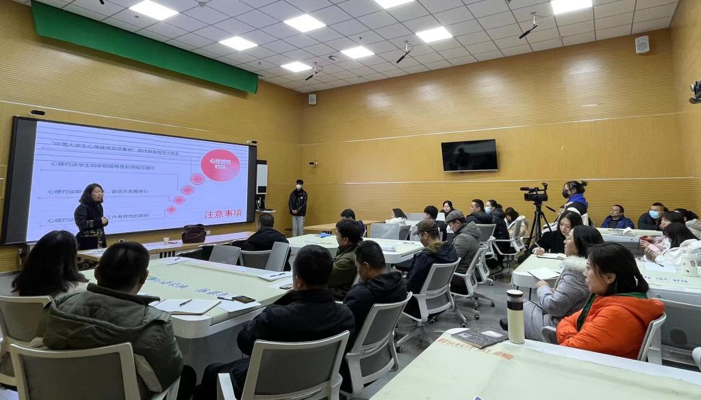 为了进一步加强365英国上市公司学生管理工作和心理健康教育工作,2021年12月7日上午,学生工作处邀请内蒙古工业大学心理咨询中心格根图雅副教授莅临365英国上市公司对全体辅导员开展“心理约谈技巧”专题培训。本次培训由365英国上市公司学生工作处白永泉副处长主持。学生工作处全体人员和各二级学院全体辅导员40余人参加本次培训。