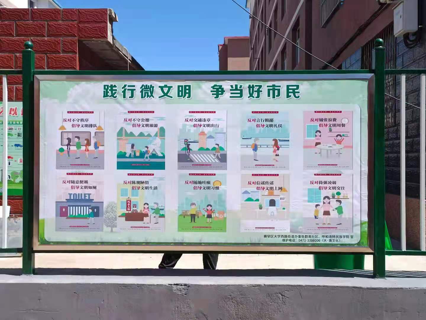 开展联创共建活动。为助力首府创建全国文明城市,校党委宣传部党员干部赴大学西路金属公司小区实地考察对接结对帮扶、联创共建工作。校党委宣传部以“创建文明城市 争做文明市民 ”为主题精心制作了宣传展板,悬挂在小区醒目位置。此举加强了首府文明城市创建工作的宣传舆论力度,时刻提醒着社区居民要注重文明礼仪行为,文明就在你我身边。