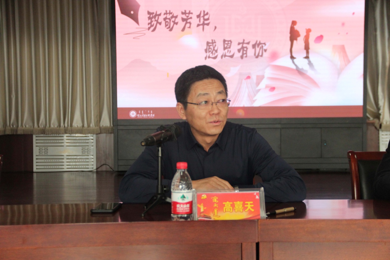 格校长从人才培养质量、硕士点建设、科研能力提升、校园面积拓展等方面简单回顾了学校近年来取得的成绩。他指出,各位荣休的同志们在学校奋斗了几十年,见证了学校的翻天覆地的发展变化,并为学校发展做出了自己的努力和贡献,学校的每一份成就和进步都渗透着荣休教职工的智慧和汗水,他们既是学校事业发展的建设者,又是学校创业历史的见证者,更是学校核心竞争力提升的重要的参与者。他强调,学校党委将一如既往的关心关爱退离休人员工作,用心用情、精准精细竭诚为离退休教职工服务,积极为退离休教职工办实事、做好事、解难事,为“老有所学、老有所养、老有所为、老有所乐”创造更好的条件。青年教师们虚心向老同志、老教师学习将他们优良的传统、宝贵的经验、优秀的品质发扬光大。