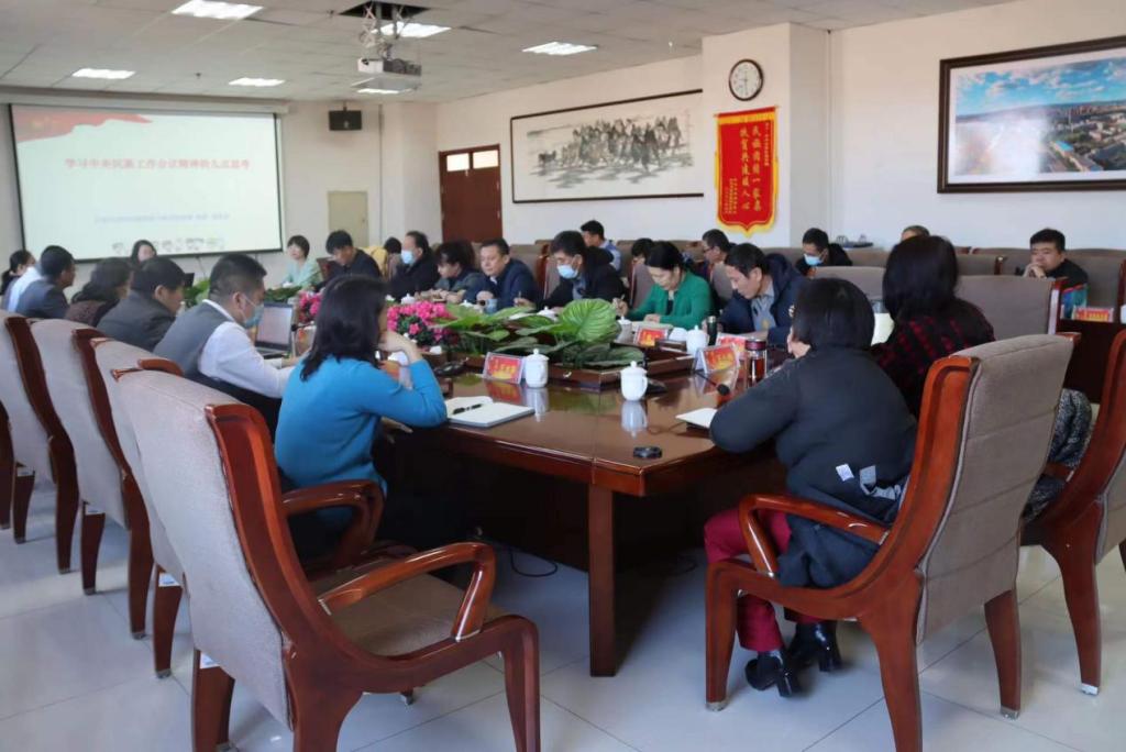 12月24日,内蒙古自治区民族研究学会常务理事,学习贯彻中央民族工作会议精神暨铸牢中华民族共同体意识自治区宣讲团成员、内蒙古党校民族理论与政策教研部胡清惠教授作学习贯彻中央民族工作会精神专题辅导讲座。党委委员、纪委书记、监察专员王冬梅,党委委员、副校长高喜天,自治区社科联社科普及部一级调研员朱浪,党委委员、统战部部长包君,党委委员、教务处处长额尔敦布和,党委委员、党政办公室主任朝格吉乐图,自治区社科联社科普及部邓利锋以及党委理论学习中心组成员,机关各部门、马克思主义学院主要负责人聆听专题辅导讲座。讲座由党委委员、组织部部长吴阿古拉主持。