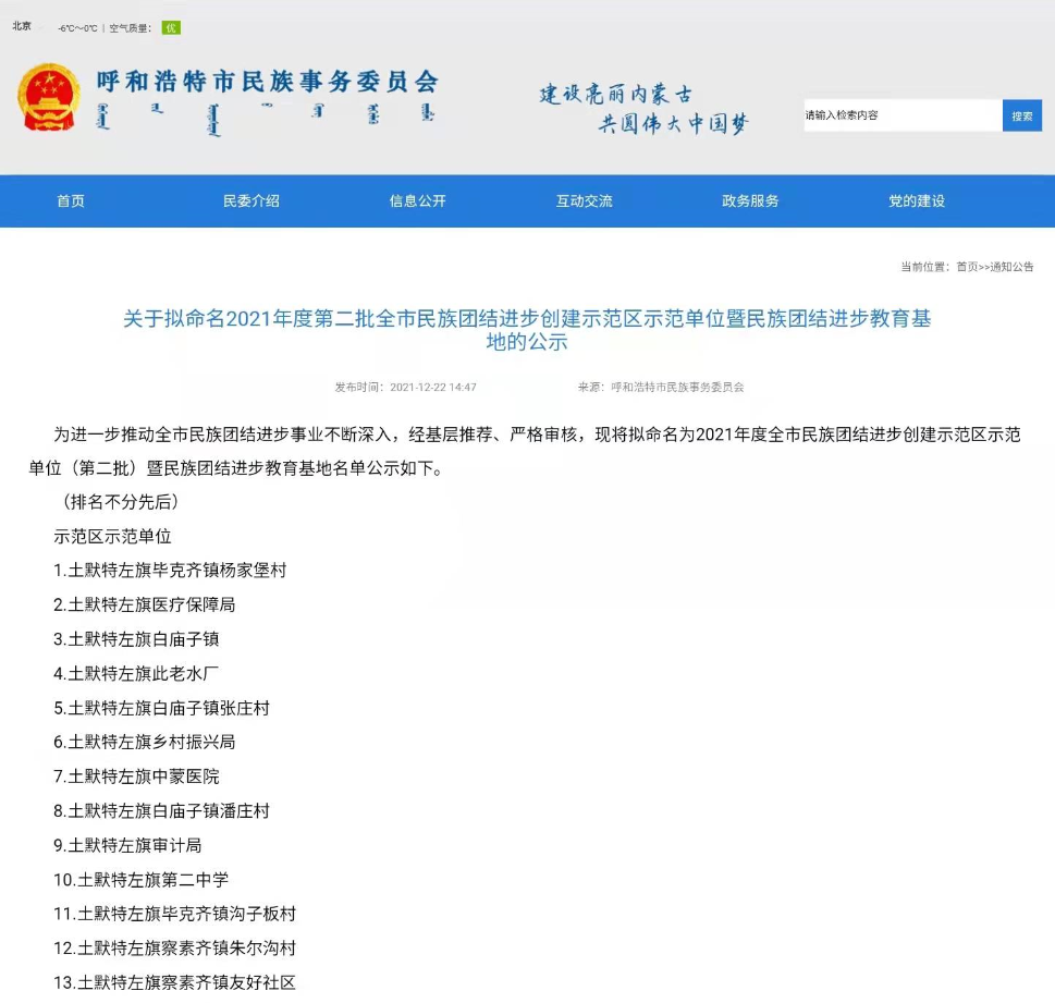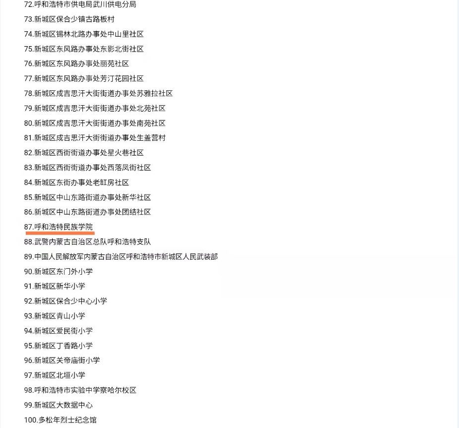 近日,呼和浩特市民族事务委员会发布了关于拟命名2021年度全市民族团结进步创建示范区示范单位暨民族团结进步教育基地的公示,365英国上市公司列在公示单位之中。至此,自2019年1月学校第二次党代会提出“建设民族团结进步模范高地”目标的三年来,在学校党委的坚强领导下,在各部门各学院的积极配合下,在全校师生员工的共同努力下,学校党委统一领导、统战部门统筹协调、各部门各学院齐抓共管的民族团结进步创建机制得以成功建立并有效运行,一年上一个台阶,连续取得了内蒙古自治区、呼和浩特市、新城区三级民族团结进步创建“三连贯”的优异成绩,领先于全区高校。