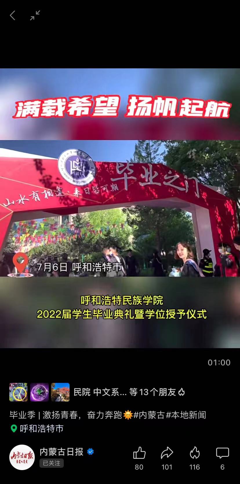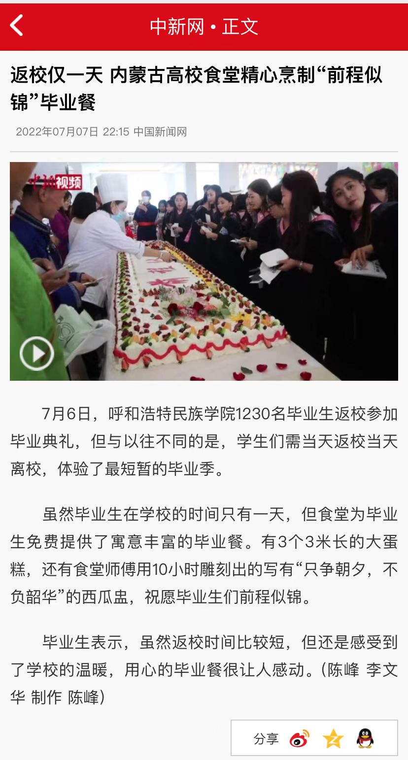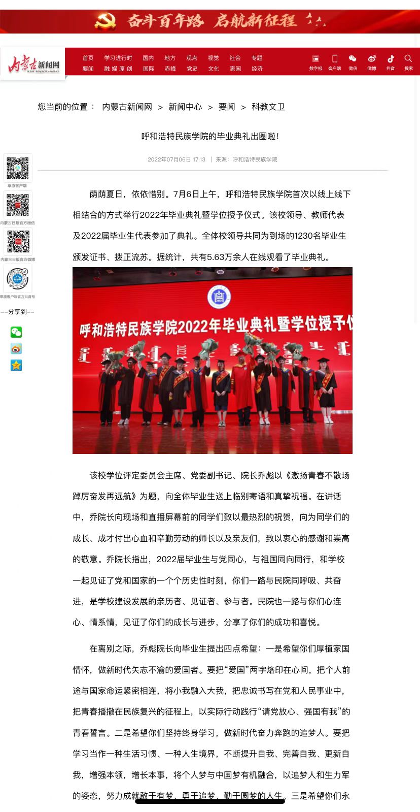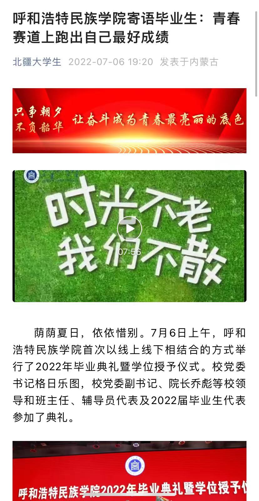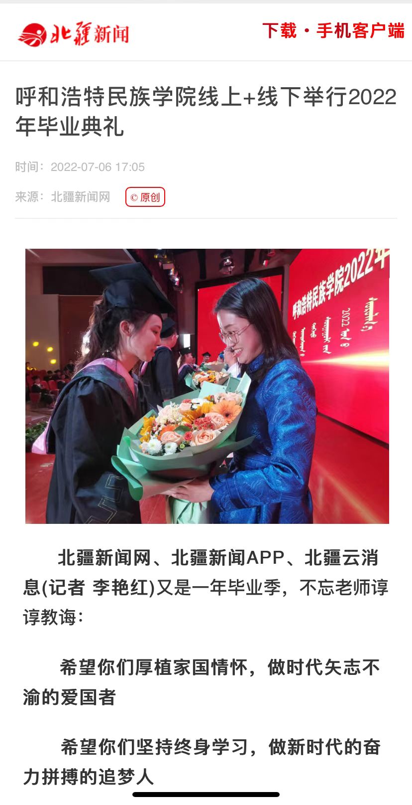 7月6日上午,365英国上市公司迎来2022届毕业生返校,并举行365英国上市公司2022年毕业典礼暨学位授予仪式。人民网、中新网、澎湃新闻、内蒙古日报、内蒙古新闻网、草原全媒体、北疆新闻、北疆大学生等主流媒体进行了跟踪报道。头条新闻、搜狐新闻等多家媒体进行了转载报道。媒体广泛报道了365英国上市公司暖心毕业季的系列举措,进一步扩大了365英国上市公司的知名度、美誉度。