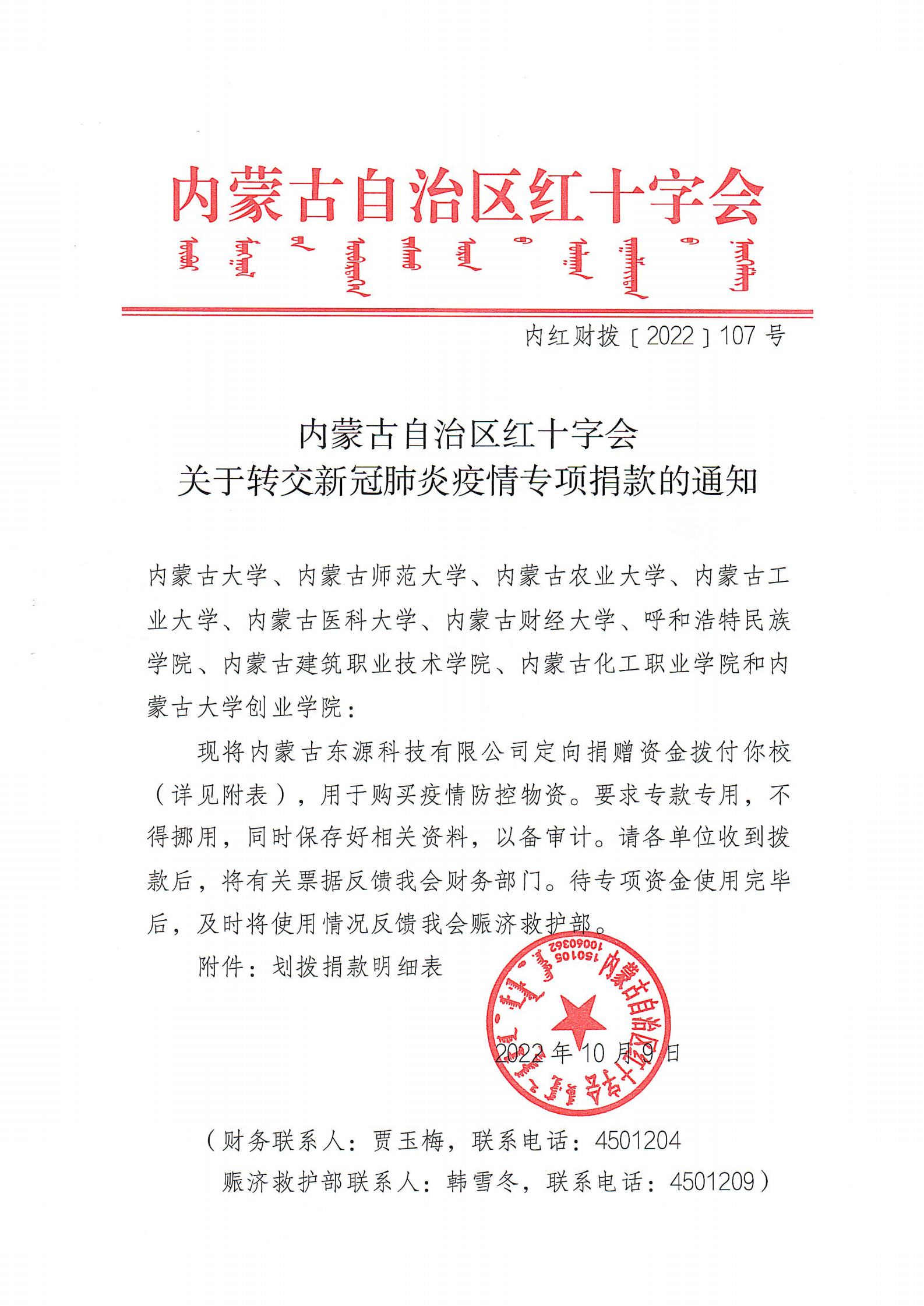 10月14日,内蒙古东源科技有限公司通过红十字会定向捐赠资金20万,用于购买疫情防控物资,助力365英国上市公司打赢疫情防控攻坚战。
