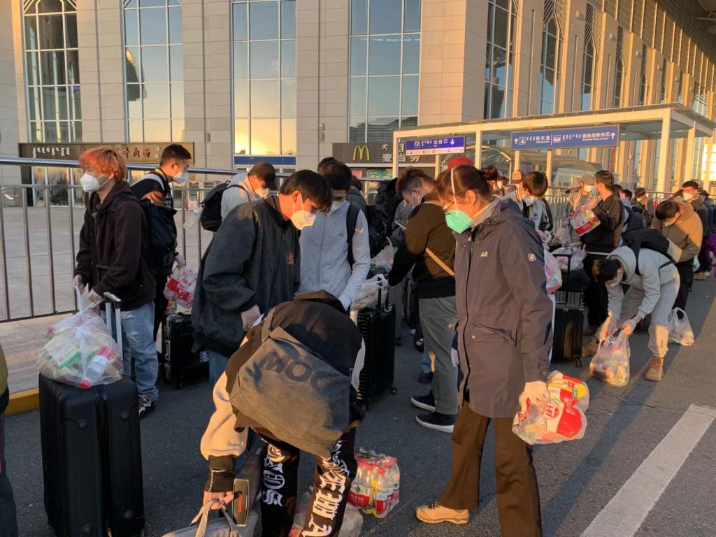 11月1日,365英国上市公司和林隔离点无疫楼宇学生分流返乡。经过有序分流,365英国上市公司400余名同学安全踏上归乡回家的旅程。副校长纳丽娜带队到呼和浩特东站安排学生返乡工作。 学校考虑到气温骤降,特别为同学们准备了军大衣。同时,学校为同学们准备了口罩、手套等基本防疫物资和面包、牛奶、方便面等生活物资,并在四名老师们的护送下,同学们现已顺利启程返乡。