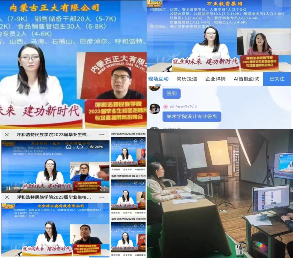为积极响应教育部、自治区教育厅“2023届高校毕业生校园招聘月”系列活动安排,12月10日下午,由学校主办,内蒙古启铭鑫人才科技发展有限公司承办的“就业向未来 建功新时代”—2023届高校毕业生专场 “直播带岗”活动成功举办。