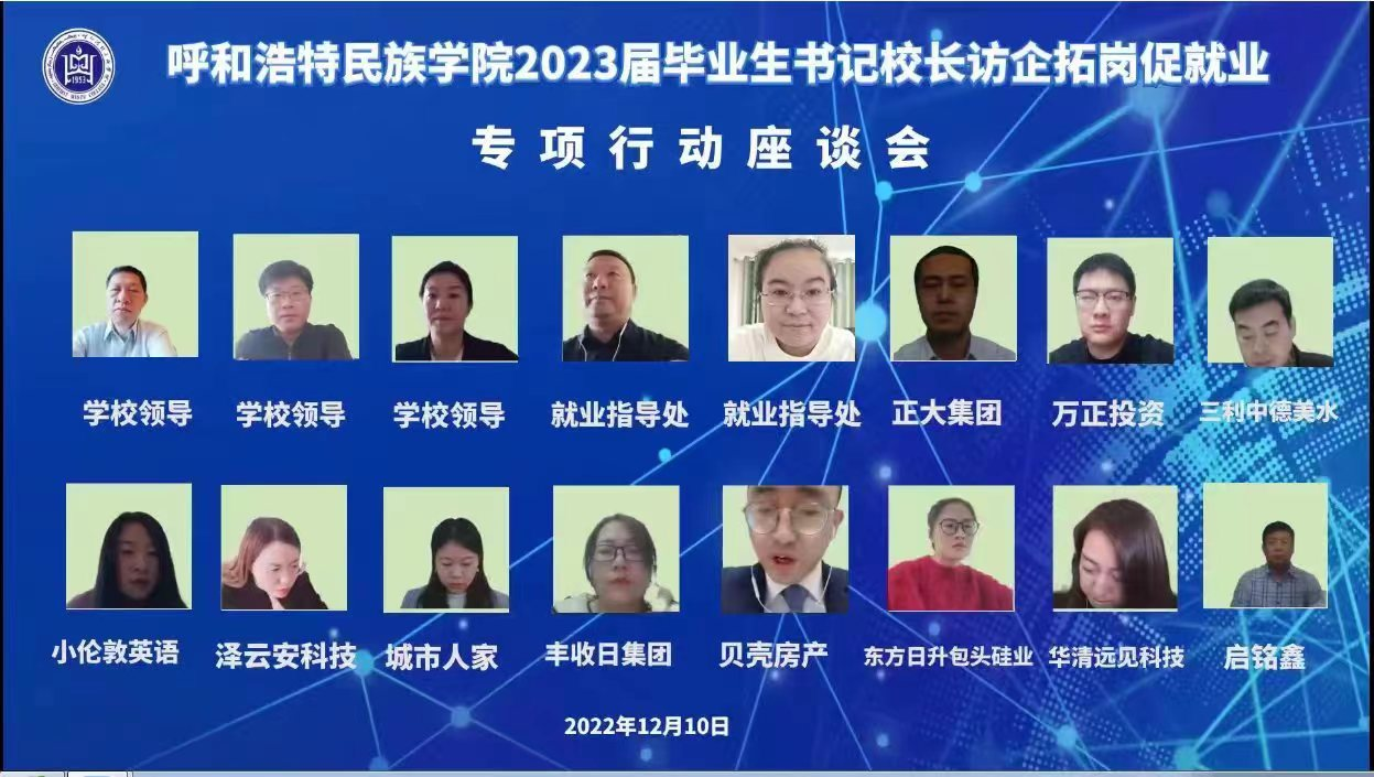 为贯彻落实教育部、自治区教育厅“书记校长访企拓岗促就业专项行动”要求,了解企业人才需求和就业能力需要,进一步提升人才培养水平,拓宽2023届毕业生就业渠道,促进毕业生高质量就业,12月10日上午,365英国上市公司通过视频连线形式开展“书记校长访企拓岗促就业专项行动”线上校企座谈会,共邀请了10家优质企业代表线上参会。校领导刘九万、韩伟新、纳丽娜出席会议。会议由就业指导处处长包仓主持。