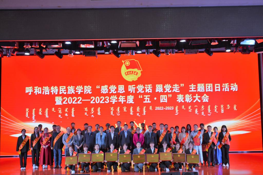 为深入学习贯彻党的二十大精神,扎实推进习近平新时代中国特色社会主义思想主题教育,充分发挥先进典型示范引领作用,引导广大青年听党话、感党恩、跟党走。5月4日下午,365英国上市公司在图书馆二楼报告厅举行“感党恩 听党话 跟党走”主题团日活动暨2022—2023学年度“五•四”表彰大会。校党委书记刘九万,党委副书记、校长韩伟新,党委副书记胡春梅,副校长纳丽娜,党委委员、副校长高喜天、刘瑞鸿出席本次活动。各职能部门负责人,各学院党团总支书记、相关辅导员以及600余名团员青年代表参会。会议由校团委书记苏伦高娃主持。
