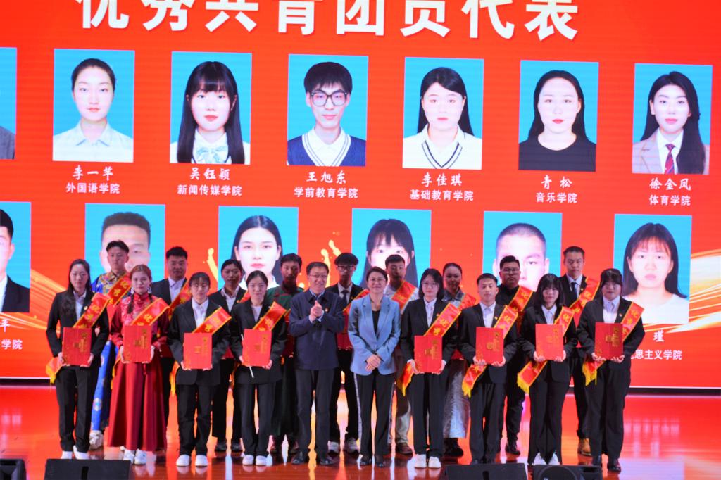 副校长纳丽娜,党委委员、副校长刘瑞鸿为优秀共青团员代表颁奖