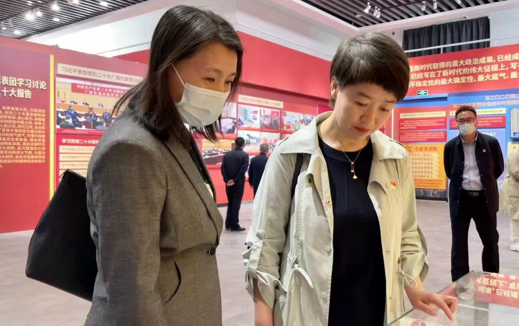 参观开始前,全体观展人员步入宣誓大厅,重温入党誓词。大家面向鲜红的中国共产党党旗,郑重举起右拳宣誓,用铮铮誓言宣示坚定决心,庄严的宣誓声响彻大厅。