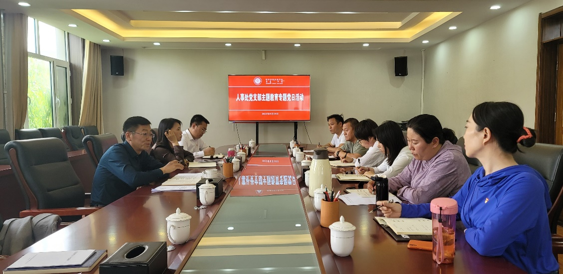 人事处党支部书记、处长王水英对支部主题教育开展情况进行了阶段性总结,并布置了下一阶段具体工作。