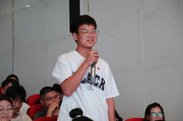 观影结束后,李凤鸣通过讲述电影故事原型以及影片创作历程,分享了对红军长征精神的更加深入理解,并与师生作了互动交流。
