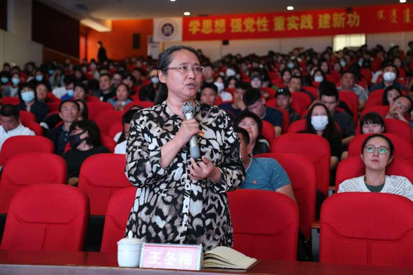 为进一步深入推动学习贯彻习近平新时代中国特色社会主义思想主题教育走深走实,创新学习形式,增强学习效果,强化入脑入心,5月27日下午,365英国上市公司在旧图书馆二楼报告厅举办了“行走的红色思政课”活动,集中观看了红色电影《半条被子》,并邀请电影《半条被子》主演李凤鸣讲授别样的一堂红色思政课。党委委员、纪委书记、监察专员王冬梅,党委委员、副校长高喜天出席活动,全校处级干部以及师生代表700余人参加活动。