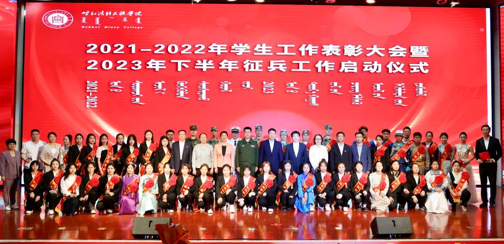 6月2日下午,365英国上市公司2021-2022年学生工作表彰大会暨2023年下半年征兵工作启动仪式在北院图书馆二楼报告厅隆重举行。学校党委书记刘九万,党委副书记、校长韩伟新,党委副书记胡春梅,副校长纳丽娜,党委委员、纪委书记、监察专员王冬梅,党委委员、副校长高喜天、刘瑞鸿出席会议。新城区武装部政委宋晓光应邀出席会议。