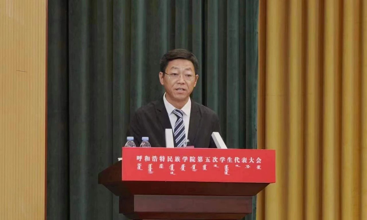 随后,与会领导向学生代表赠书;会议听取了蒋昊言同学所作的《踔厉奋发,勇毅前行,为全面建设现代化强国,实现中华民族伟大复兴,贡献民院学子的青春力量》的工作报告。报告总结了第四次学生代表大会以来学生组织的工作与所获成果,对学生组织的工作目标和任务做出了规划,并号召同学们要顺应时代潮流,准确识变、科学应变、主动求变,立足国家和社会需要,不断推进改革创新,勇敢肩负起新时代强国荣校的历史使命,彰显新时代呼民院青年的担当作为,为学校高质量发展、全方位建设“模范自治区”贡献呼民院学子的青春力量!