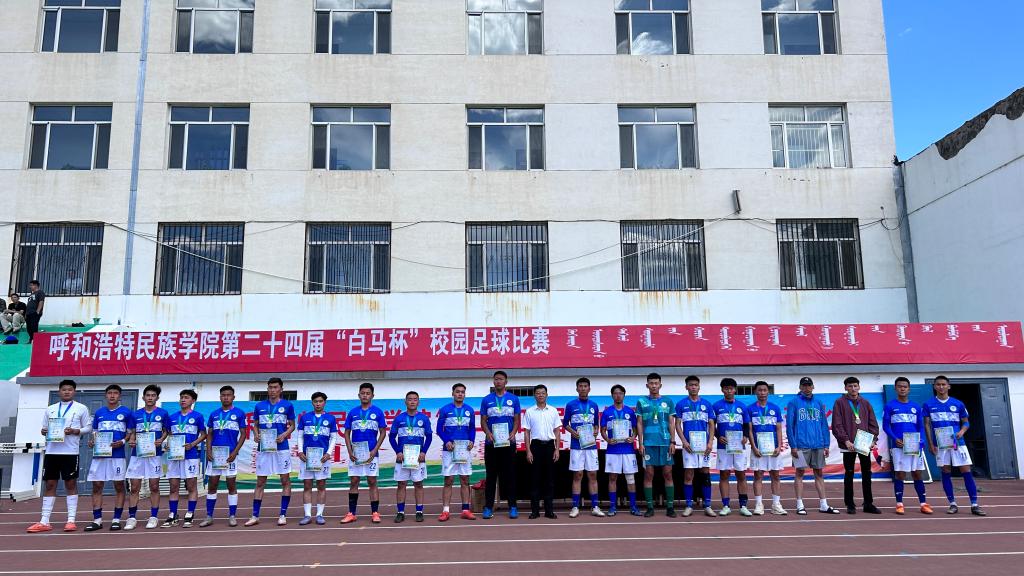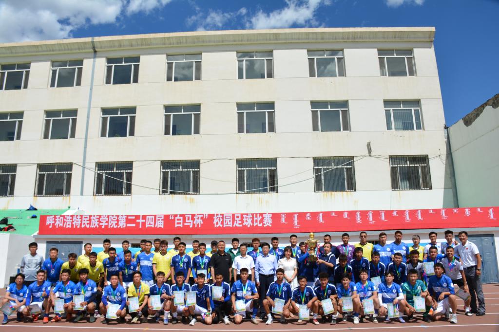 本届“白马杯”校园足球比赛历时一个半月,共进行了32场比赛,体育学院和蒙古学学院足球队凭借骁勇的锐气和扎实的功底一路过关斩将,成功晋级决赛。在决赛中,双方进攻、防守,各不相让。场外观众欢呼声的不断加持让飞扬的步伐和矫健的身姿在绿茵场上显得格外耀眼。最终,体育学院足球队以1:0的优势夺得了本届比赛的冠军,蒙古学学院足球队获得亚军,经济管理学院足球队获得季军。
