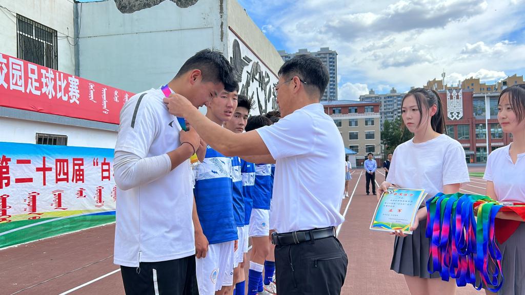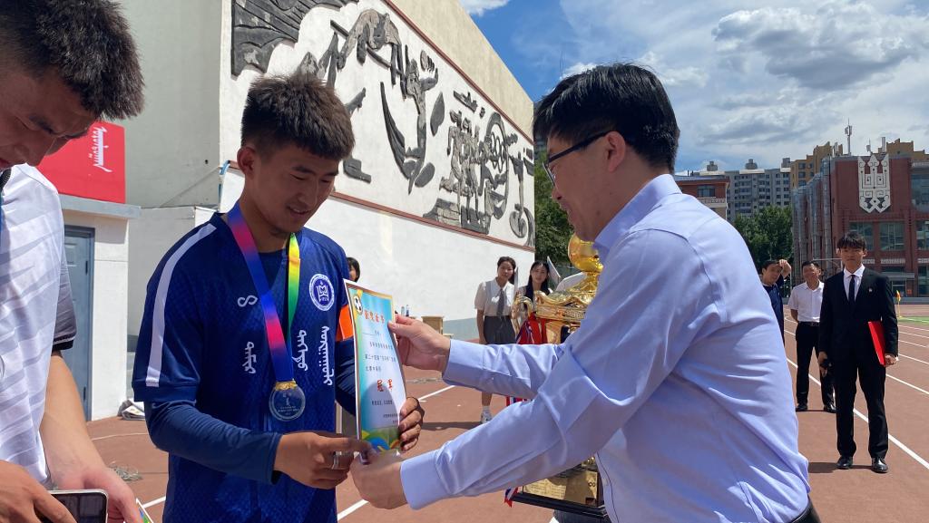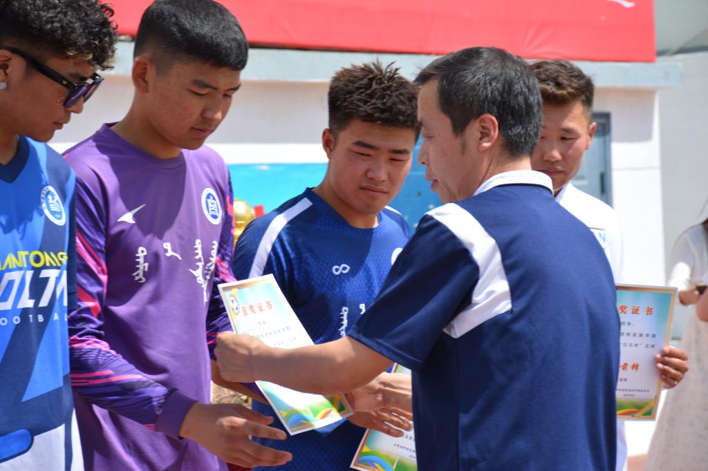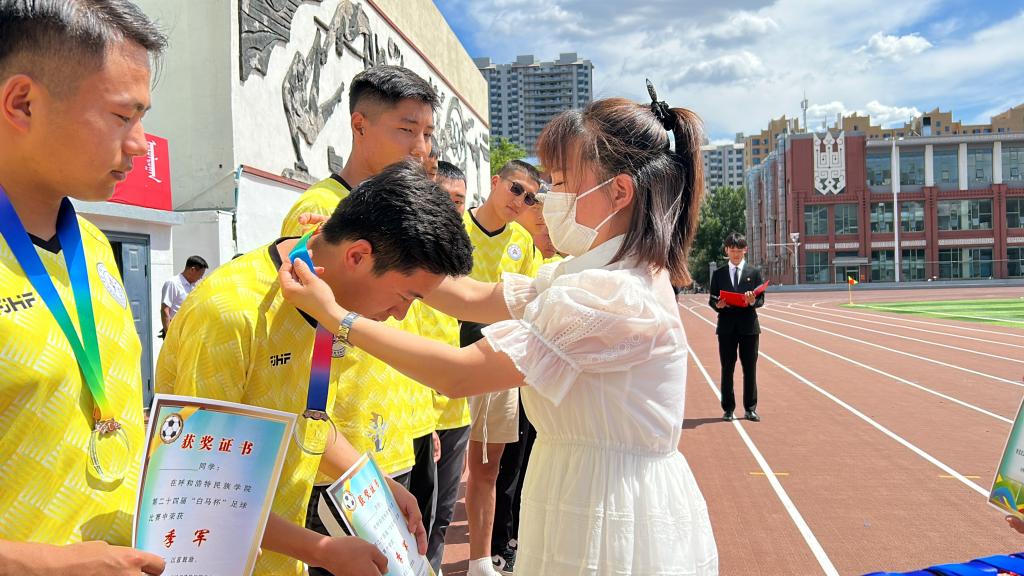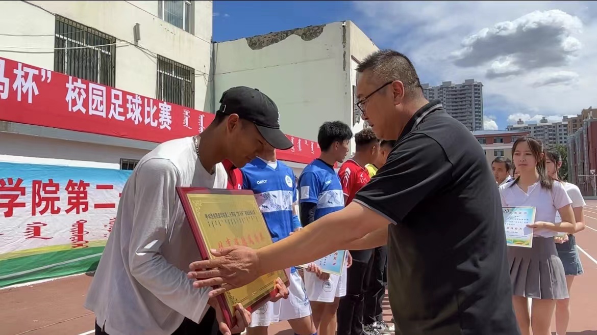校长韩伟新、副校长高喜天以及团委书记苏伦高娃、体育学院党总支书记白东升、体育学院院长乌日根牧仁分别为冠亚季军球队、最佳阵容、最佳射手、最有价值球员、体育道德风尚奖颁发了奖杯和奖牌,体育学院运动学教研室南丁宝力格宣读了获奖名单。