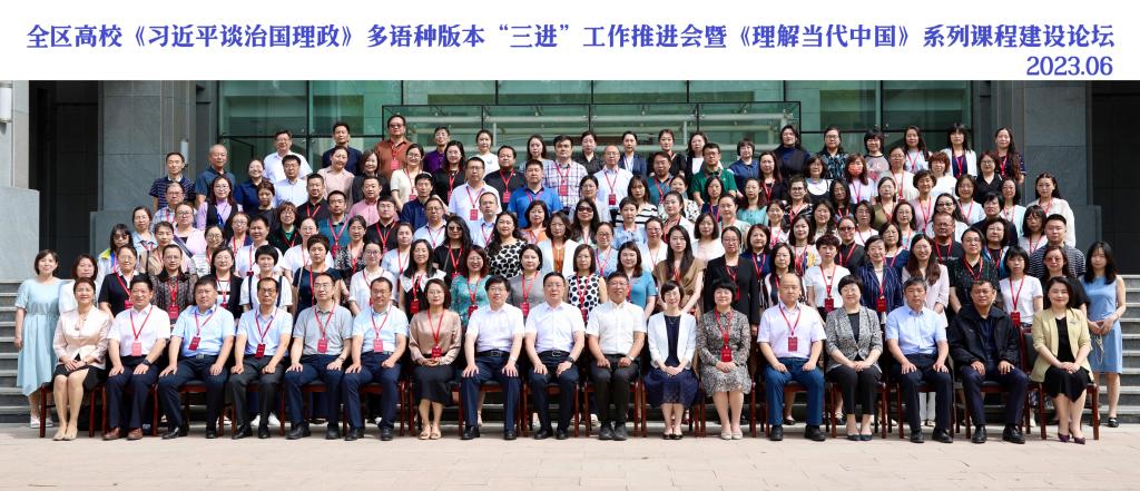 开幕式上,贾云指出,全面落实《习近平谈治国理政》多语种版本进高校、进教材、进课堂,是培养高素质复合型国际传播人才的重要保障。我区认真组织“理解当代中国”系列课程培训,指导高校课堂教学,稳步推进“三进”工作,并取得了阶段性成果。贾云强调,在“三进”工作中,一要着力提高政治站位。将习近平新时代中国特色社会主义思想贯穿于人才培养全过程,抓住课堂教学主渠道,强化外语教师与思政课教师互动交流,形成三全育人的良好局面。二要着力优化课程设置。从人才培养方案入手,统筹规划,完善课程设置,推动国际传播人才培养相关课程建设,构建高质量人才培养体系。三要着力创新教学方法。强化价值引领、知识传授与能力培养的有机融合的方法、途径,借助数字化教学资源和教学平台,增强教学的丰富性和生动性。四要着力提升教师能力。鼓励教师申报相关科研课题,积极参加全国高校教师教学创新大赛和外研社“教学之星”大赛等活动,凝练优秀教学成果,发挥示范引领作用。五要着力丰富实践活动。开展第二课堂活动,通过丰富多样的形式,确保学生不仅要“学得会”,还要“用得好”。