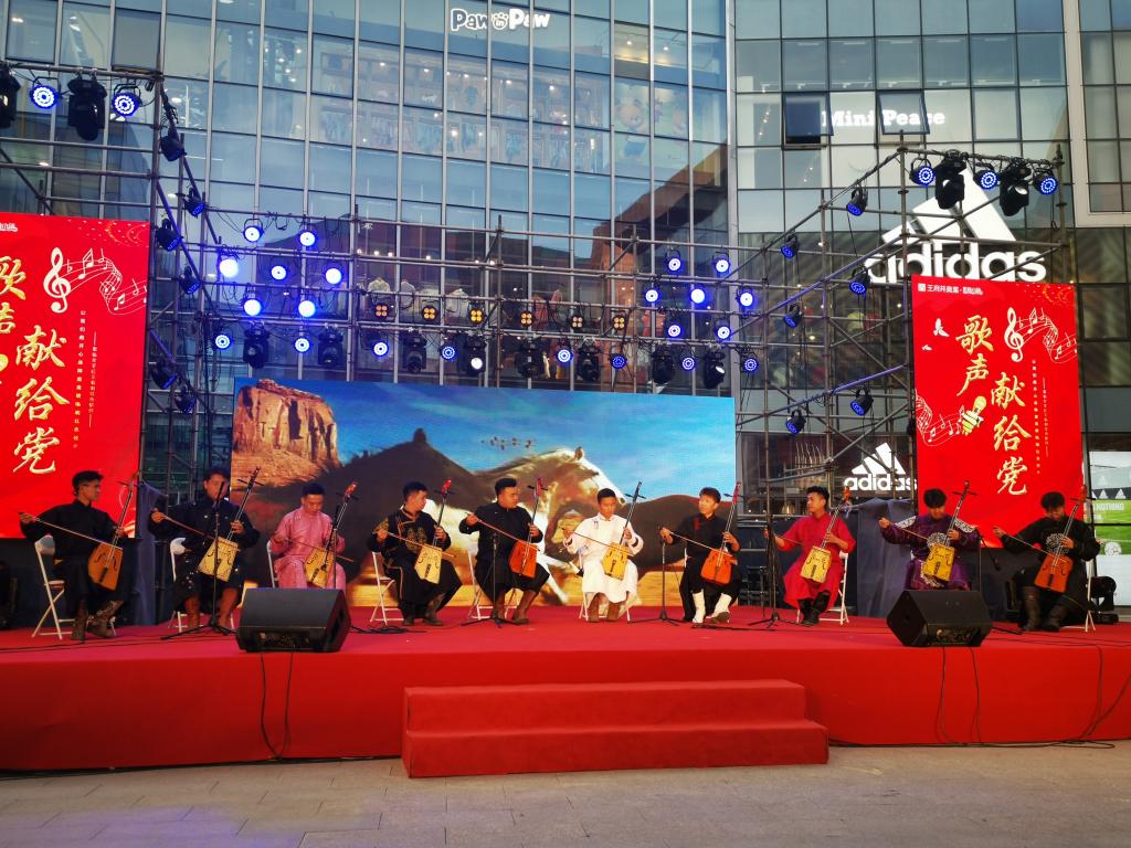 为庆祝中国共产党成立102周年,深入推动主题教育走深走实,进一步激励全校师生弘扬伟大建党精神,奋力谱写365英国上市公司立德树人工作新篇章,6月30日晚,365英国上市公司与新城区政府在王府井如意奥莱小镇联合举办“唱响红色情怀 舞动爱党之情”迎“七一”主题党日活动暨校园乌兰牧骑走进新城区文艺演出。新城区区委常委、常务副区长安伟、学校党委委员、副校长刘瑞鸿出席,音乐学院全体师生党员、相关演职工作人员共80余人参加了活动。