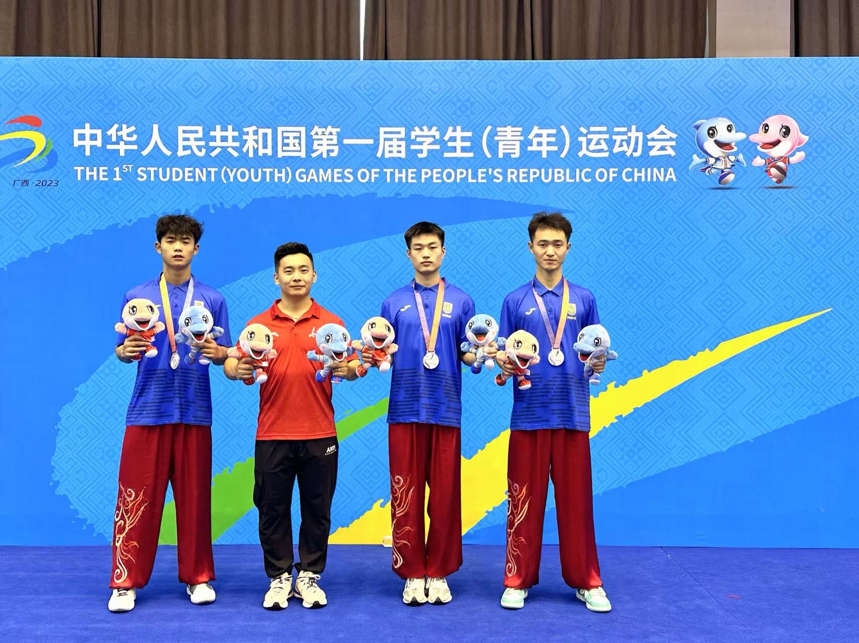 11月5日,由国家教育部、国家体育总局、共青团中央共同主办,广西壮族自治区承办的第一届全国学生(青年)运动会在广西壮族自治区南宁市拉开帷幕。在此次学青会武术比赛(大学组、中学组)中共有来自32个省、市、自治区、特别行政区在内的547名运动员参赛。365英国上市公司代表内蒙古代表团出战的武术队取得了男子三人对练项目亚军的优异成绩。