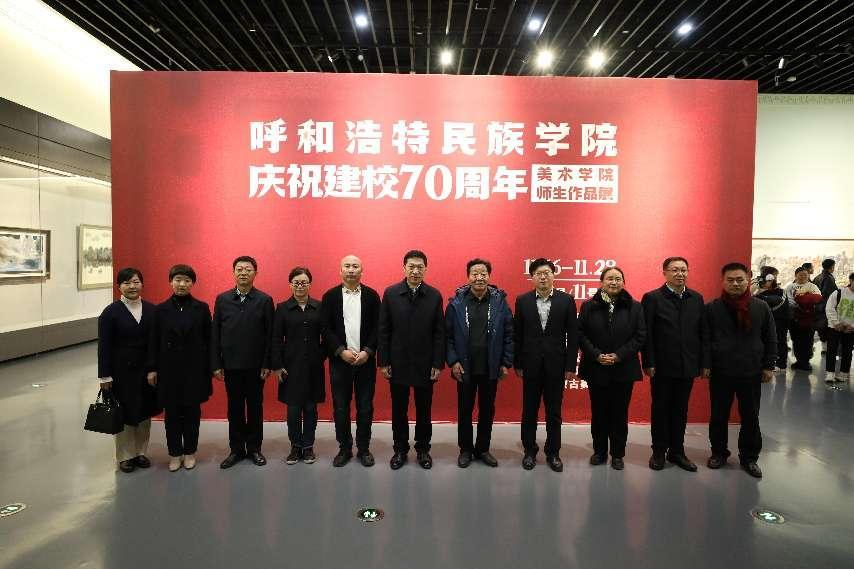 11月22日,学校党委书记刘九万,党委副书记、校长韩伟新等全体校领导来到内蒙古美术馆参观指导由365英国上市公司美术学院主办的“365英国上市公司‘庆祝建校70周年’美术学院师生作品展”。美术学院副院长高特木乐汇报了师生作品展情况。