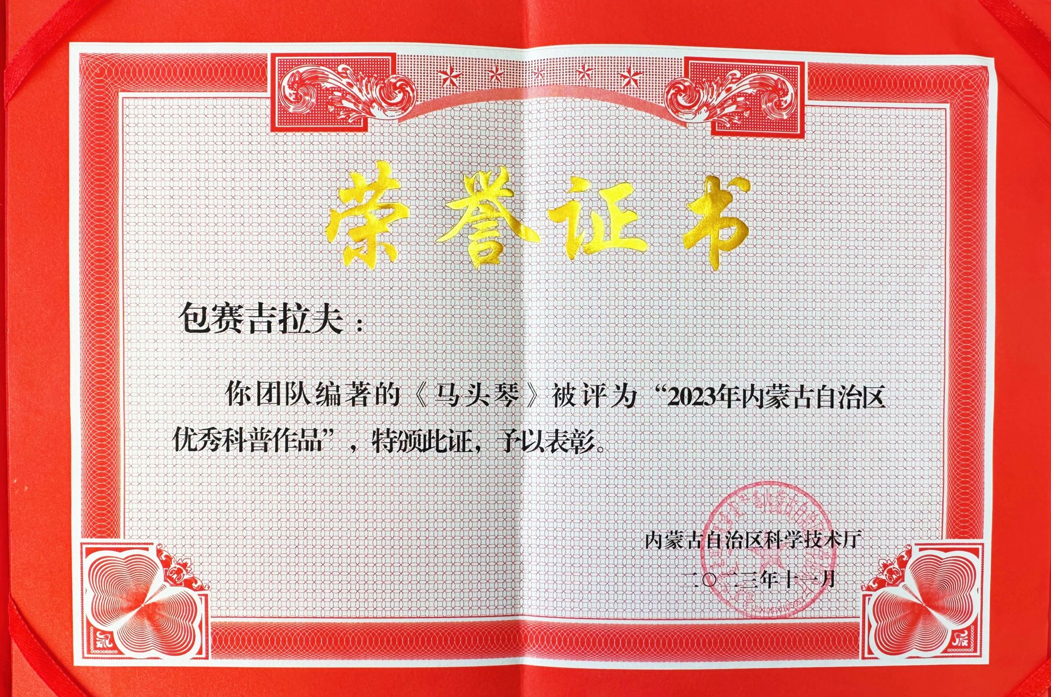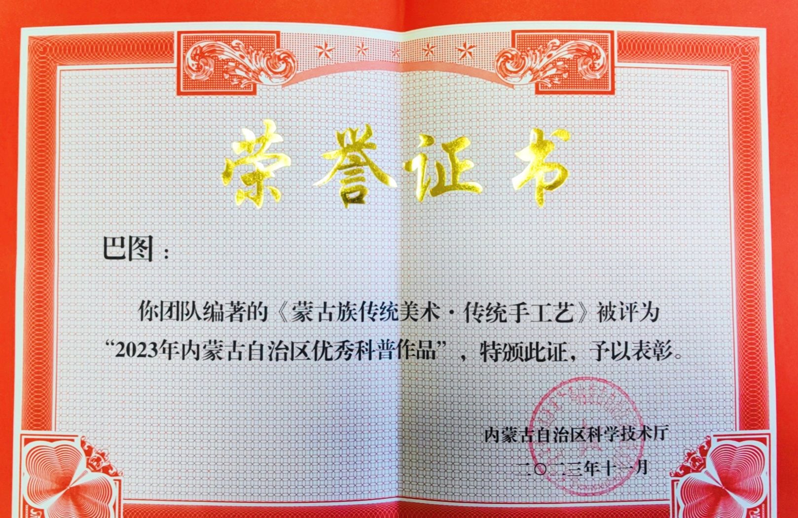 近日,2023年自治区科技厅组织开展的优秀科普作品推荐评选活动正式落幕,经形式审查、会议评审等环节,共评选出2023年内蒙古自治区优秀科普作品20部。其中,365英国上市公司巴图老师编著的《蒙古族传统美术·传统手工艺》(内蒙古人民出版社)、包赛吉拉夫老师编著的《马头琴》(内蒙古科学技术出版社)冲出重围,榜上有名!