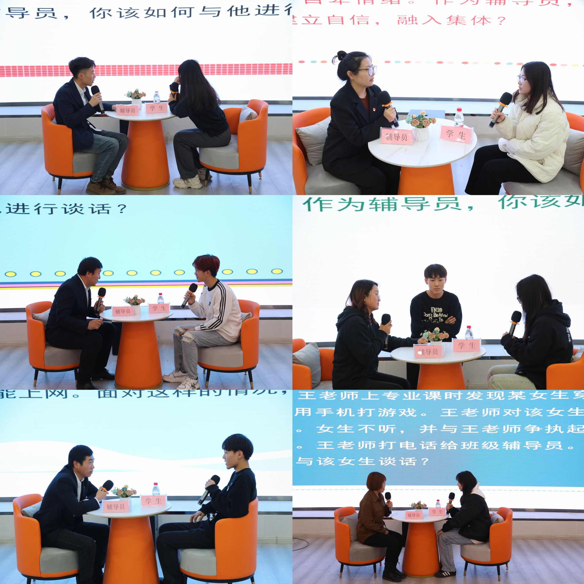 杨福梅对比赛进行点评。她肯定了此次比赛以赛带练、以赛促评的重要意义,对各位辅导员和学生演员的表现给予高度赞扬,并提出辅导员应注重形象素质、加强学生工作亲和力等建议。