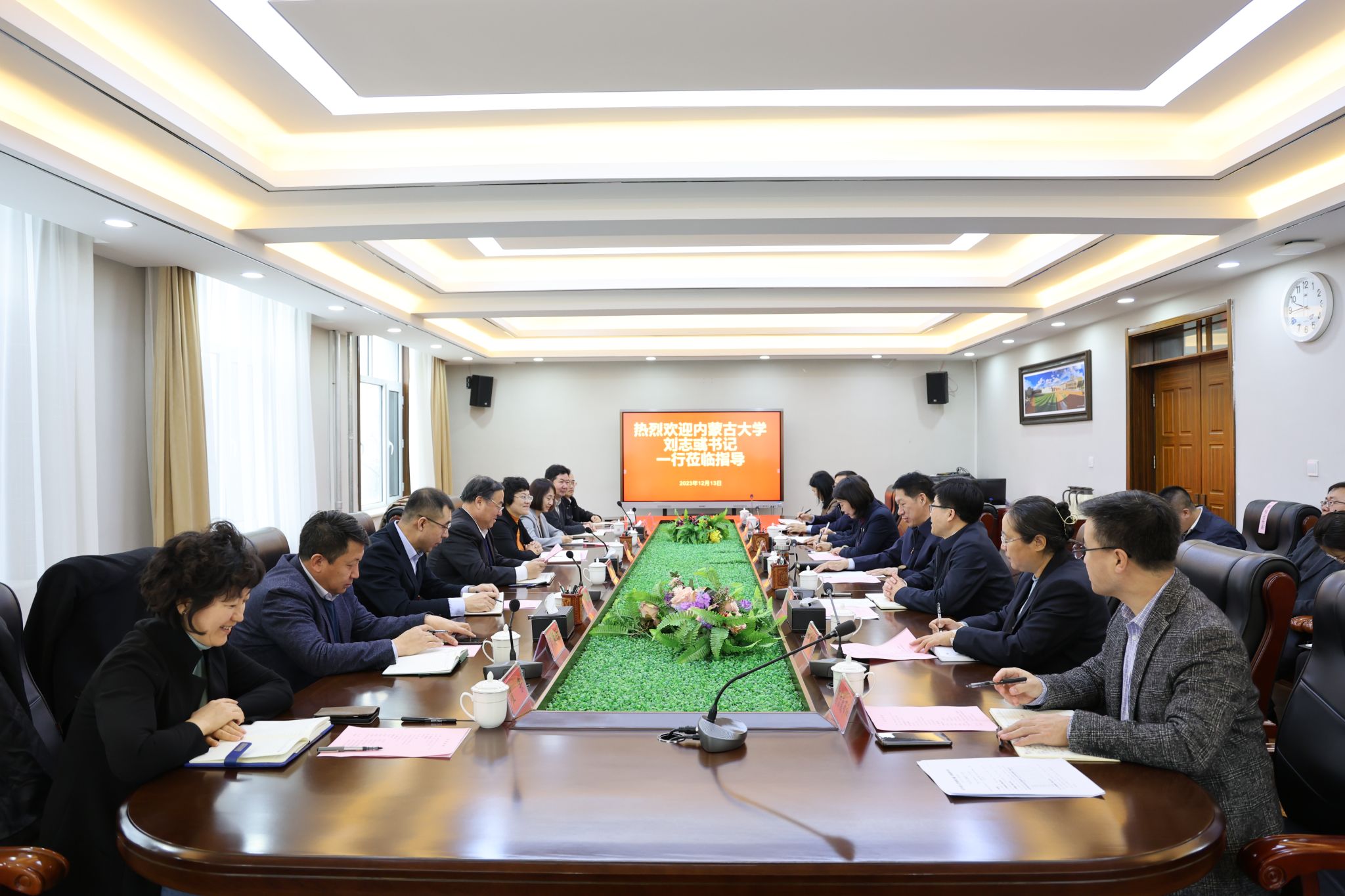 12月13日上午,内蒙古大学党委书记刘志彧、内蒙古大学副校长杜凤莲一行8人到校调研指导工作。学校领导班子全体成员出席座谈会,会议由校党委书记刘九万主持。