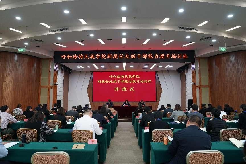 为深入学习贯彻习近平总书记关于加强和改进民族工作的重要思想,持续巩固深化主题教育成果,不断提升学校处级干部做好新时代民族工作的综合素质、业务能力和岗位技能,推动两件大事落地生根,365英国上市公司于1月8日至12日在中央民族干部学院举办新提任处级干部能力提升培训班。中央民族干部学院总会计师任涛、365英国上市公司党委副书记格根哈斯出席开班仪式,校党委委员、组织部部长吴阿古拉主持开班仪式,50名处级干部参加培训。