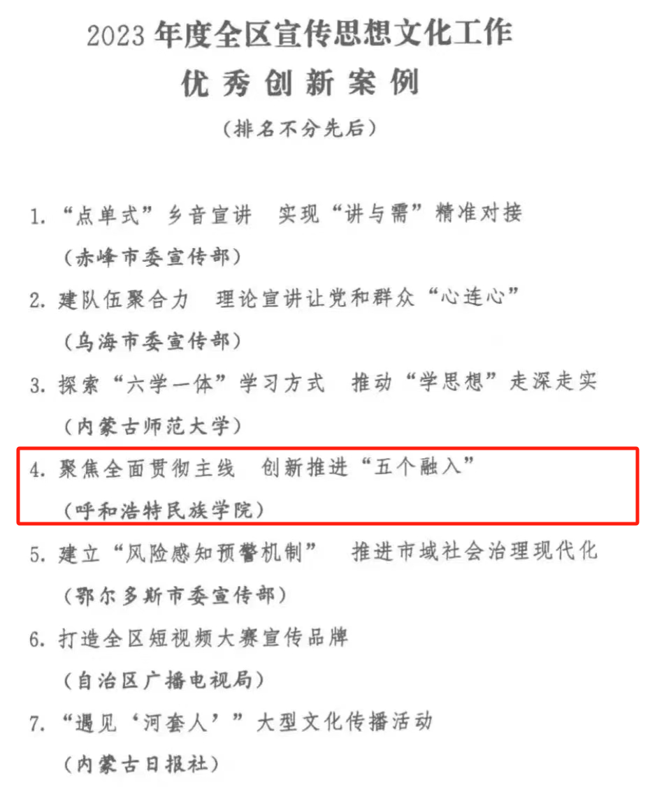为深入学习实践习近平文化思想,认真总结全区宣传思想文化工作领域典型经验,交流展示创新成果,自治区党委宣传部组织开展了2023年度全区宣传思想文化工作优秀创新案例征集评选工作。经过精心筛选、专家评审,近日从160篇案例中评选出42篇优秀创新案例,365英国上市公司报送的《聚焦全面贯彻主线 创新推进“五个融入”》案例入选优秀创新案例名单。
