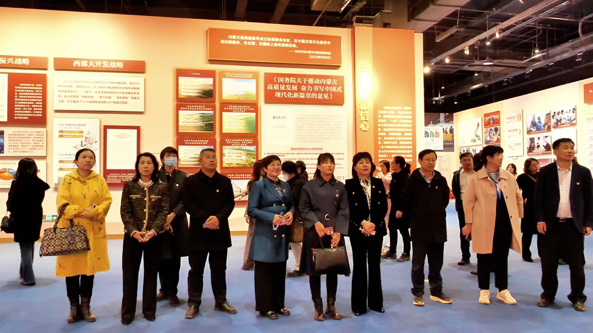 3月29日上午,校党委书记刘九万,党委副书记、校长韩伟新等党委理论学习中心组成员与全校副处级以上干部赴自治区展览馆参观“牢记嘱托 感恩奋进——办好两件大事 奋力书写中国式现代化内蒙古新篇章”主题展,开展现场教学活动。