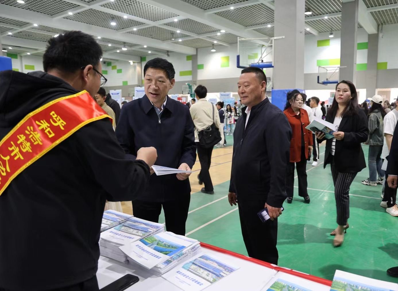 校党委书记刘九万,党委副书记、校长韩伟新,党委副书记格根哈斯,党委委员、纪委书记、监察专员王冬梅,党委委员、副校长高喜天,党委委员、副校长刘瑞鸿,党委委员、副校长额尔敦布和到现场了解企业用人需求和学生就业情况,拓展校企供需合作渠道,并认真询问参会毕业生的就业意向和求职准备情况。部分低年级同学也到现场进行观摩学习,提前感受就业氛围,尽早规划自己的职业生涯,为将来就业做好准备。学校全员深度参与,各学院相关领导、就业工作教师和毕业生班主任在活动现场做好与相关企业对接和毕业生推荐等工作。