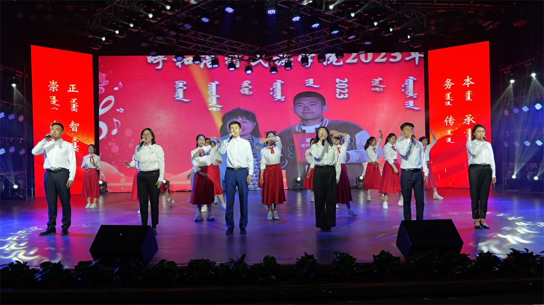 格根哈斯对青年学生作寄语时,首先充分肯定了全校各级团组织在全国志愿者服务、全区暑期“三下乡”社会实践活动、全区大学生艺术展演、“挑战杯”科技作品大赛、中国国际“互联网+”大学创新创业大赛等工作中取得的成绩,并希望团员青年,一要坚定信念,做胸怀理想的新时代好生青年。作为全国民族团结进步示范单位的青年学子,要传承好民族团结进步的优良传统,以铸牢中华民族共同体意识为主线,不断增强“五个认同”,把理想信念转化为对奋斗目标的执着追求、对高尚情操的笃定坚持、对职责使命的担当作为,为实现“强国梦”谱写青春华章。二要脚踏实地,做肯于吃苦的新时代好青年。要传承好、弘扬好五四精神,不负韶华、不辱使命,静下心来研读马克思主义经典著作、中华文化典籍和专业书籍,从中汲取智慧和力量、丰富知识储备、练就过硬本领,为学校高质量发展贡献青春力量。三要挺膺担当,做勇立潮头的新时代好青年。要时刻牢记习近平总书记的殷殷嘱托和殷切期望,大力弘扬“蒙古马精神”和“三北精神”,在实践中锤炼本领,不断提升专业技能,敢于探索创新,在推动落实自治区两件大事中,谱写青春华章、绽放青春光彩。