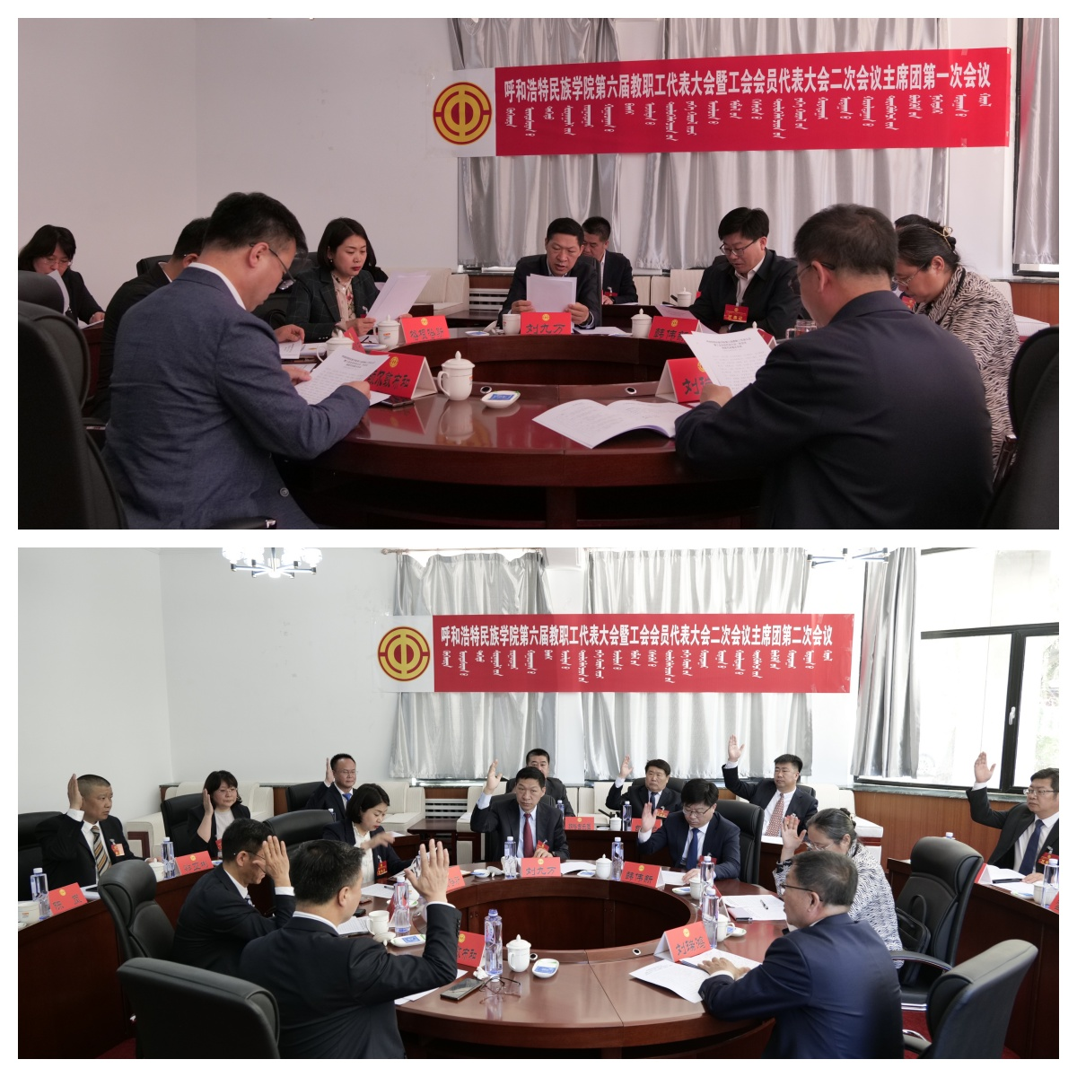 会议举行期间,学校第六届教职工代表大会暨工会会员代表大会主席团在圆桌会议室举行第一次会议,会议以举手表决的方式全票通过了列席代表、特邀代表建议名单、大会增补代表的决议(草案)、改选第六届教职工代表大会执行委员会主任人选建议名单、大会日程(草案)。举行主席团第二次会议,审议通过了《校长工作报告决议》(草案)和《工会工作报告决议》(草案)。