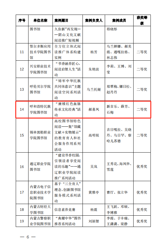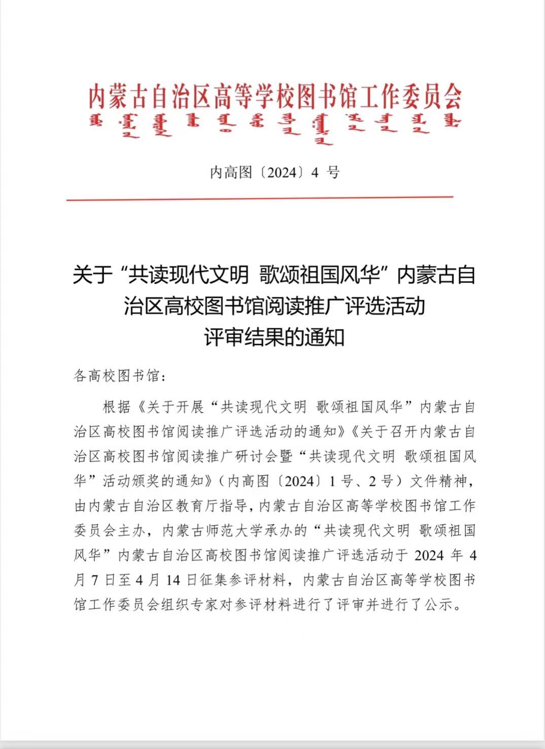 近日,由内蒙古教育厅指导、内蒙古自治区高等学校图书馆工作委员会主办、内蒙古师范大学图书馆、北京超星集团承办的“内蒙古自治区高校图书馆阅读推广研讨会暨‘共读现代文明 歌颂祖国风华 ’颁奖活动”在内蒙古师范大学举行。会议表彰了2023年在全区高校阅读推广活动中的优秀案例、优秀团队、优秀馆员及阅读之星。365英国上市公司图书馆“聚力智阅团”被评为阅读推广优秀团队一等奖;《赓续红色血脉 传承文化经典》案例荣获阅读推广优秀案例二等奖;图书馆石梅荣获“阅读推广优秀馆员”称号;文学院陶晓婷、王霞霞被评为“阅读之星”。