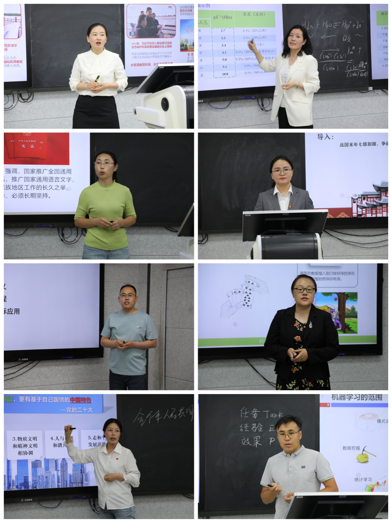 经过选手们激烈的角逐和评委老师们的公正评审,最终评出了各组的获奖教师。文科组:一等奖获得者为文学院王佳、外国语学院朝木尔勒格;二等奖获得者为外国语学院张晓娟、经济管理学院苏日嘎、学前教育学院韩斯琴;三等奖获得者为学前教育学院王妍、经济管理学院阿古达木、美术学院乌日汉、音乐学院乌日瀚。理工、思政专项组:一等奖获得者为化学与环境学院包呈敏、丁冉冉;二等奖获得者为数学科学学院吴晓红、马克思主义学院萨仁通拉嘎、数学科学学院高晶英;三等奖获得者为计算机科学学院澈力木格、马克思主义学院苏亚拉、计算机科学学院格格日胡。