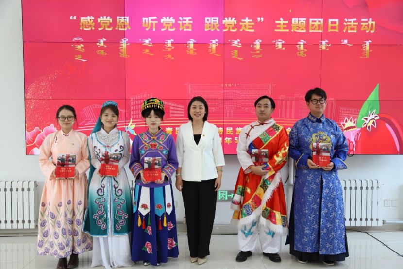 为深入贯彻落实党的二十大精神,贯落实习近平总书记考察内蒙古重要讲话精神,进一步做好民族团结进步活动月各项工作,引导广大青年感党恩、听党话、跟党走,不断增强对伟大祖国、中华民族、中华文化、中国共产党、中国特色社会主义的认同,5月27日下午,学校团委组织开展了“感党恩 听党话 跟党走 ”主题团日活动暨第四期“石榴籽”小课堂分享会。校党委副书记格根哈斯出席活动并为本期分享者们赠予了《习近平与大学生们(第二卷)》等学习书籍。活动由学校学生会主席蒋昊言同学主持。