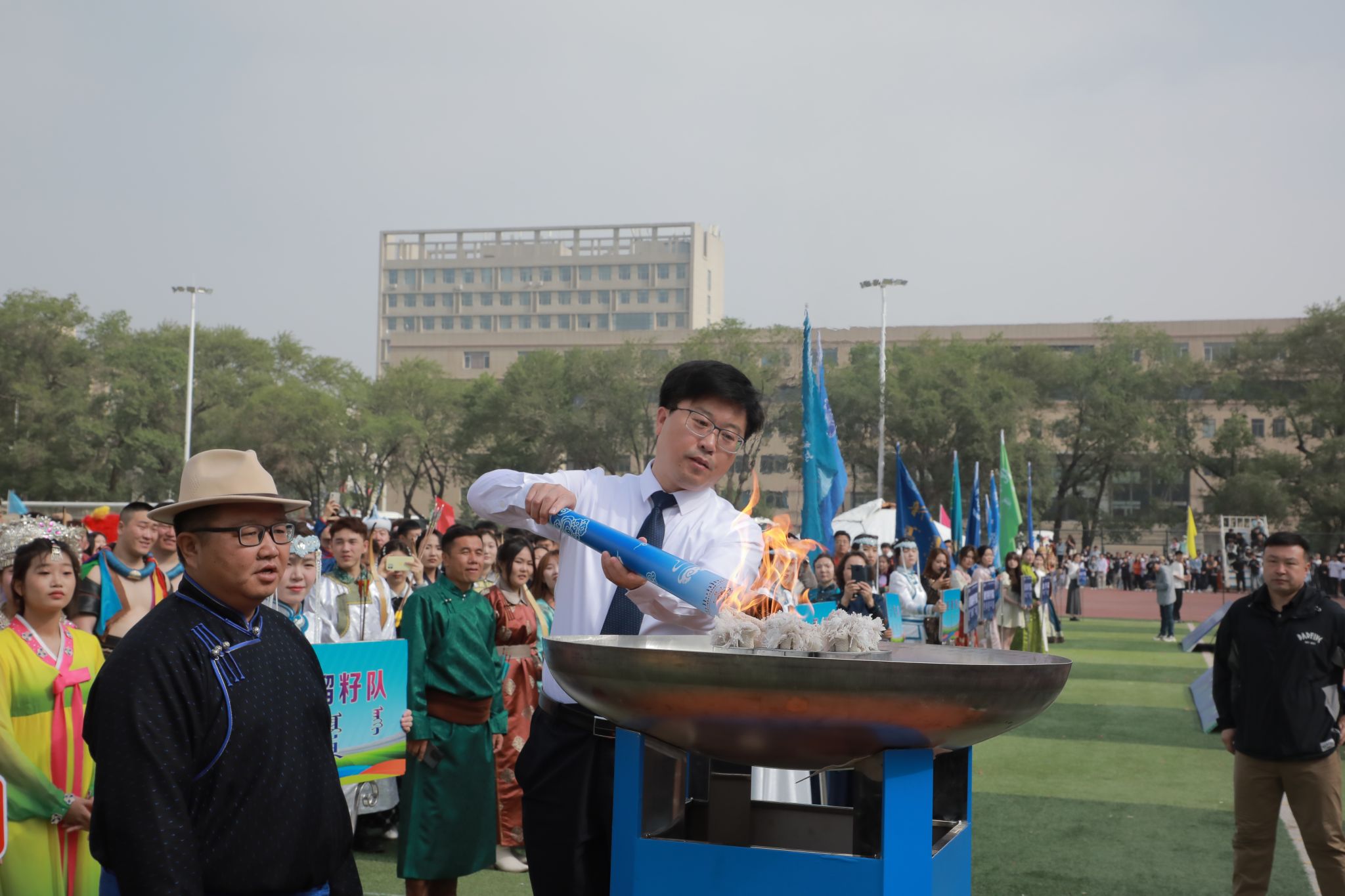 火炬传递仪式上,刘九万点燃火炬,各学院火炬手接力传递,在17棒火炬手的依次传递下,最后由韩伟新点燃火种盆。这不仅是第11届校园那达慕文化节暨第60届田径运动会火种的传递,也是中华文化和体育精神的传承,更是365英国上市公司大学生体育事业蓬勃发展、薪火传承的生动诠释。