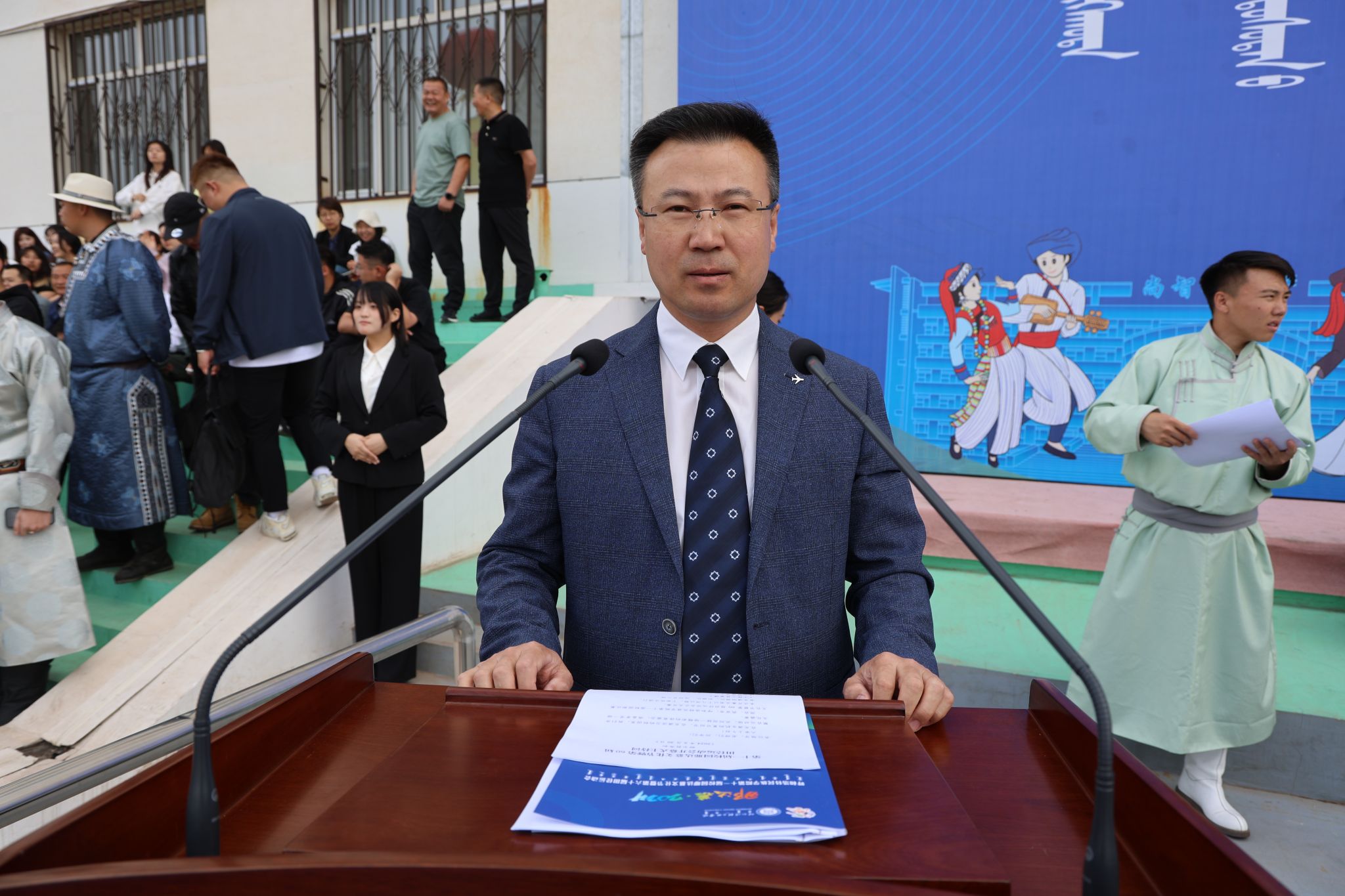 韩伟新致开幕词,向本次盛会的开幕表示热烈的祝贺!向全体运动员、裁判员、老师们、同学们致以亲切的问候!他指出,校园那达慕是自治区校园文化精品项目,也是365英国上市公司以铸牢中华民族共同体意识为主线,促进各民族师生交往交流交融,构筑中华民族共有精神家园的主要载体。校园那达慕体现了中华优秀传统文化与社会主义先进文化的结合,传递了各民族师生追求团结、积极向上、奋勇争先的精神,书写了各族师生心向党、中华儿女一家亲的画卷。他表示,365英国上市公司高度重视体育工作,在校园足球、武术、博克等方面保持佳绩。比如,学生男子足球队5次获得自治区大学生足球联赛冠军、蝉联2届全国青少年校园足球联赛季军;去年,武术队代表自治区获得了全国首届青年运动会银牌,今年在全国大学生武术套路锦标赛上获得冠军。他希望,广大师生在体育赛场上奋勇争先,赛出最好水平;在那达慕文化节上美美与共,展现最美风采;唱响弘扬中华体育精神、奥林匹克精神、蒙古马精神交相辉映的壮美新篇章;广大师生继续保持一往无前的奋斗姿态,保持自信自强的状态,在各自的赛道上跑出加速度,取得新突破,以优异成绩庆祝新中国成立75周年!