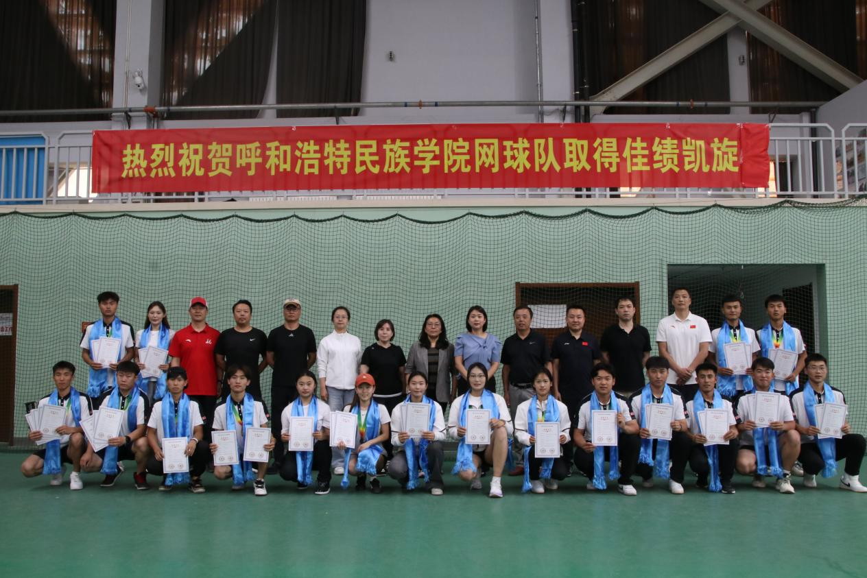 近日,学校网球队在全国和全区赛事中荣获佳绩,6月3日,校党委副书记格根哈斯一行在学校网球馆迎接运动员们凯旋而归。党政办、团委、工会、教务处、后勤管理处、对外合作与交流中心等部门负责人参加欢迎仪式。