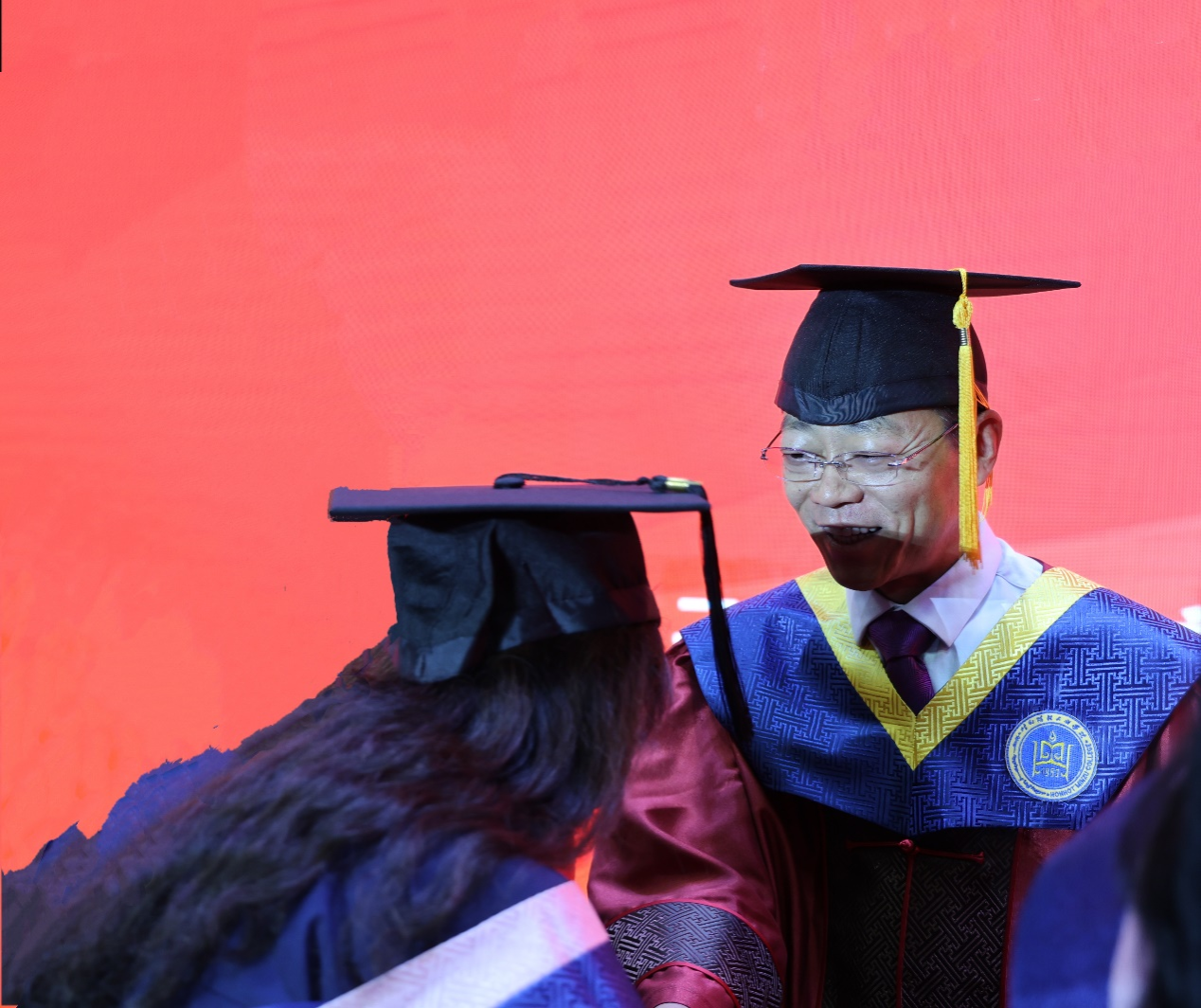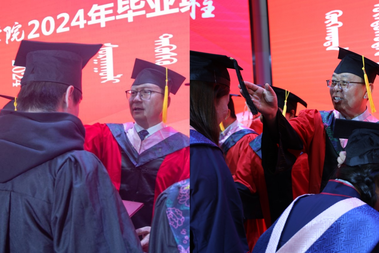 六月夏至见成长,清晨喜雨沐芳华,6月21日,学校在图书馆隆重举行2024年本科生毕业典礼暨学位授予仪式。校党委书记刘九万,党委副书记、校长韩伟新,党委副书记格根哈斯,党委委员、纪委书记、监察专员王冬梅,党委委员、副校长高喜天,党委委员、副校长额尔敦布和出席毕业典礼,各部门、各学院教师代表与600名2024届本科毕业生来到典礼现场,共同见证本科毕业这一人生中的重要时刻。毕业典礼由格根哈斯主持。