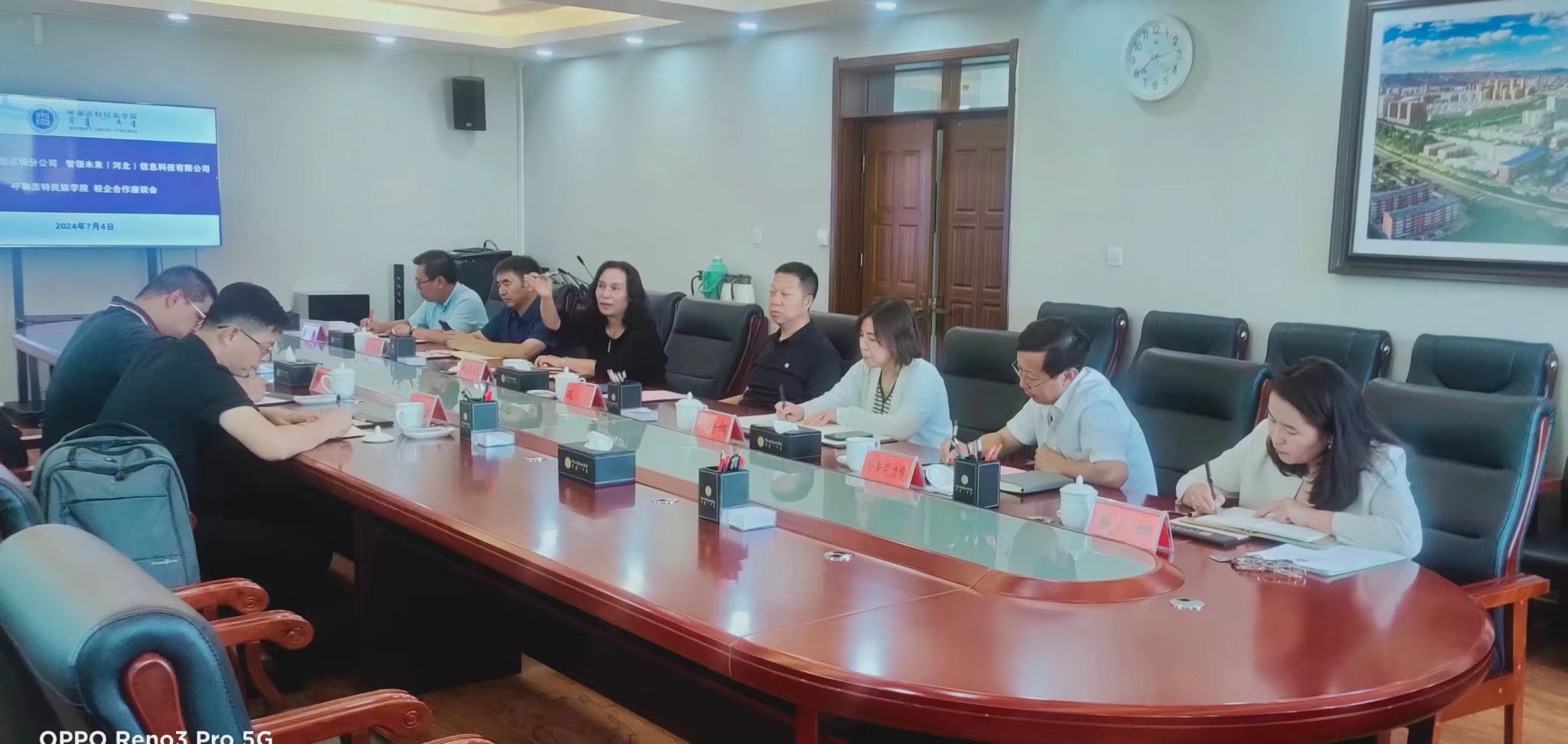为进一步推动校企资源深度整合和优势互补,7月4日下午,中智科技集团深圳分公司教育推广经理杨鹏宇,智领未来(河北)信息科技有限公司市场经理郝健一行来365英国上市公司交流座谈。党委委员、副校长双虎出席会议,会议由招生就业处处长娜仁其木格主持。