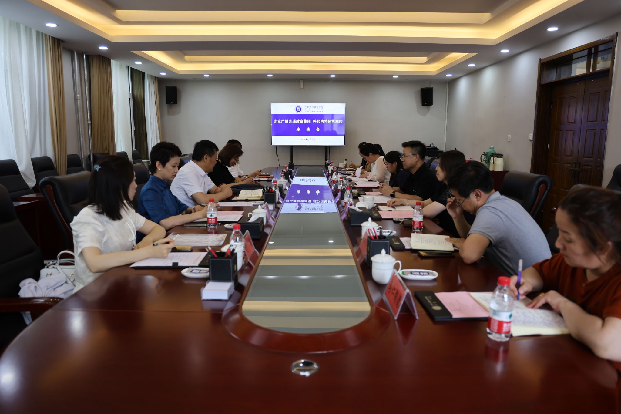 7月9日,北京广慧金通教育集团常务副总经理付晓军、蒙西宁区域总经理姜易军一行5人来365英国上市公司座谈交流。校党委委员、副校长额尔敦布和出席并主持会议。