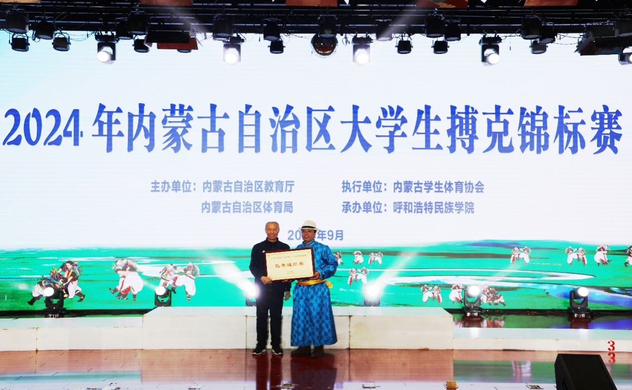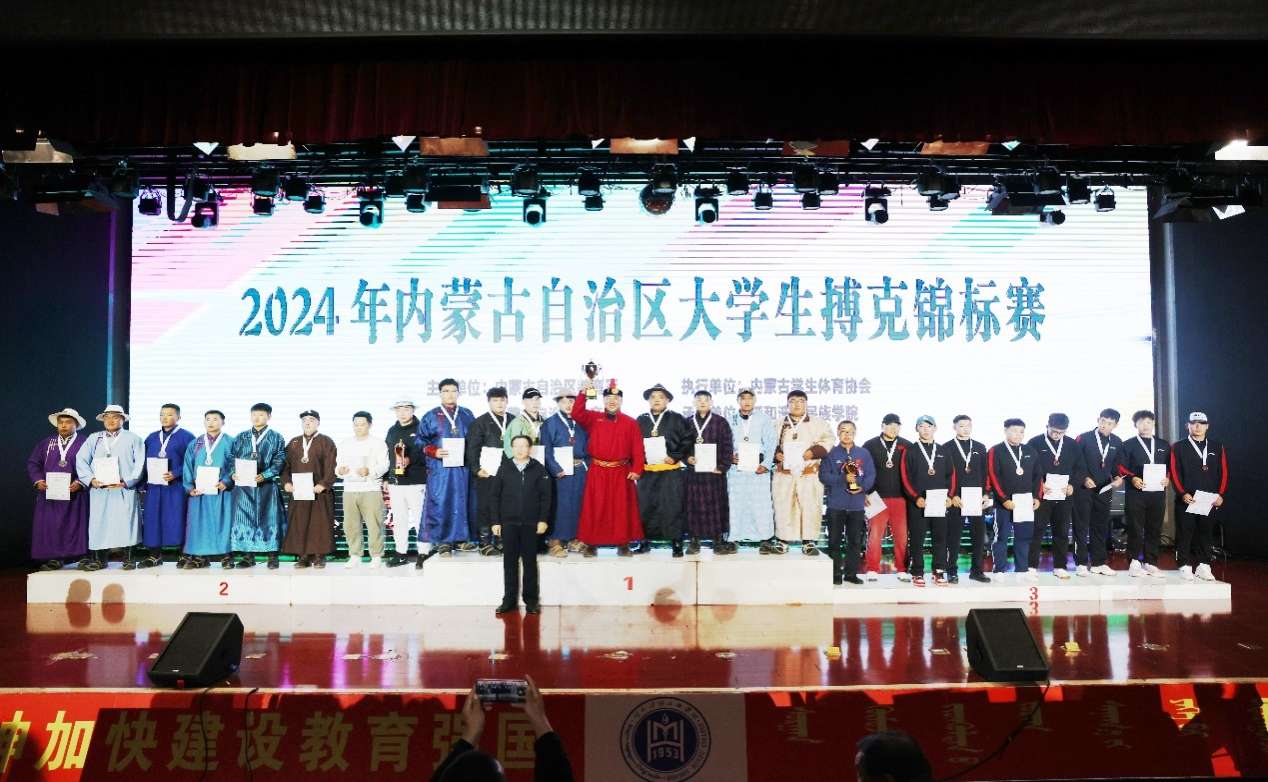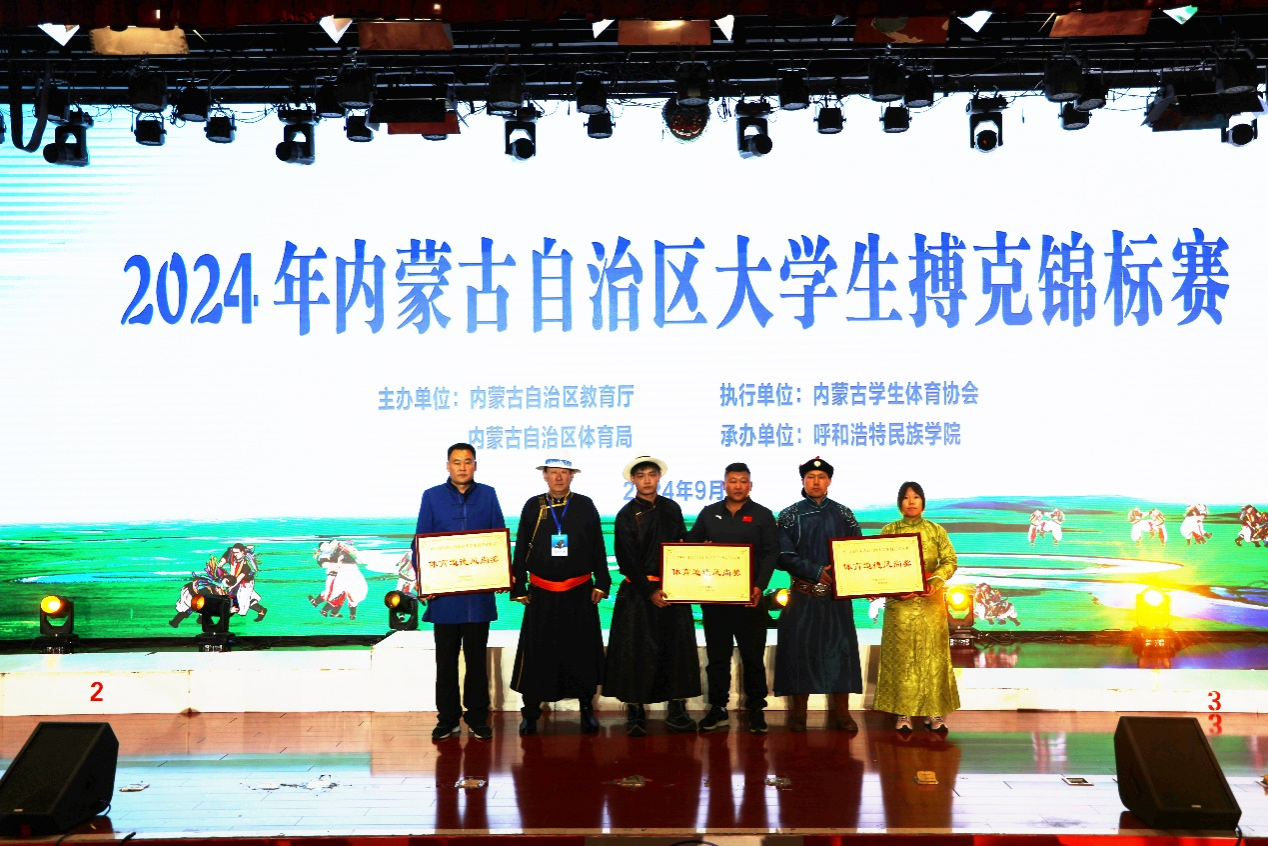 9月29日,2024年内蒙古自治区大学生搏克锦标赛闭幕式在铸牢教育馆二楼举行,校党委委员、副校长刘瑞鸿等相关单位领导参加闭幕式并为获奖运动员颁奖。