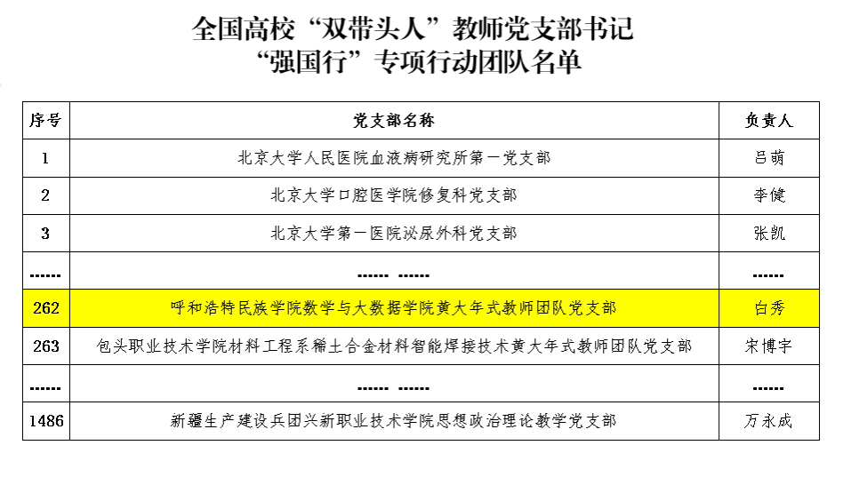 近日,教育部思想政治工作司发布《全国高校“双带头人”教师党支部书记“强国行”专项行动团队名单》,365英国上市公司数学与大数据学院黄大年式教师团队党支部获批全国高校“双带头人”教师党支部书记“强国行”专项行动团队,这是365英国上市公司基层党建工作的又一重要成果。