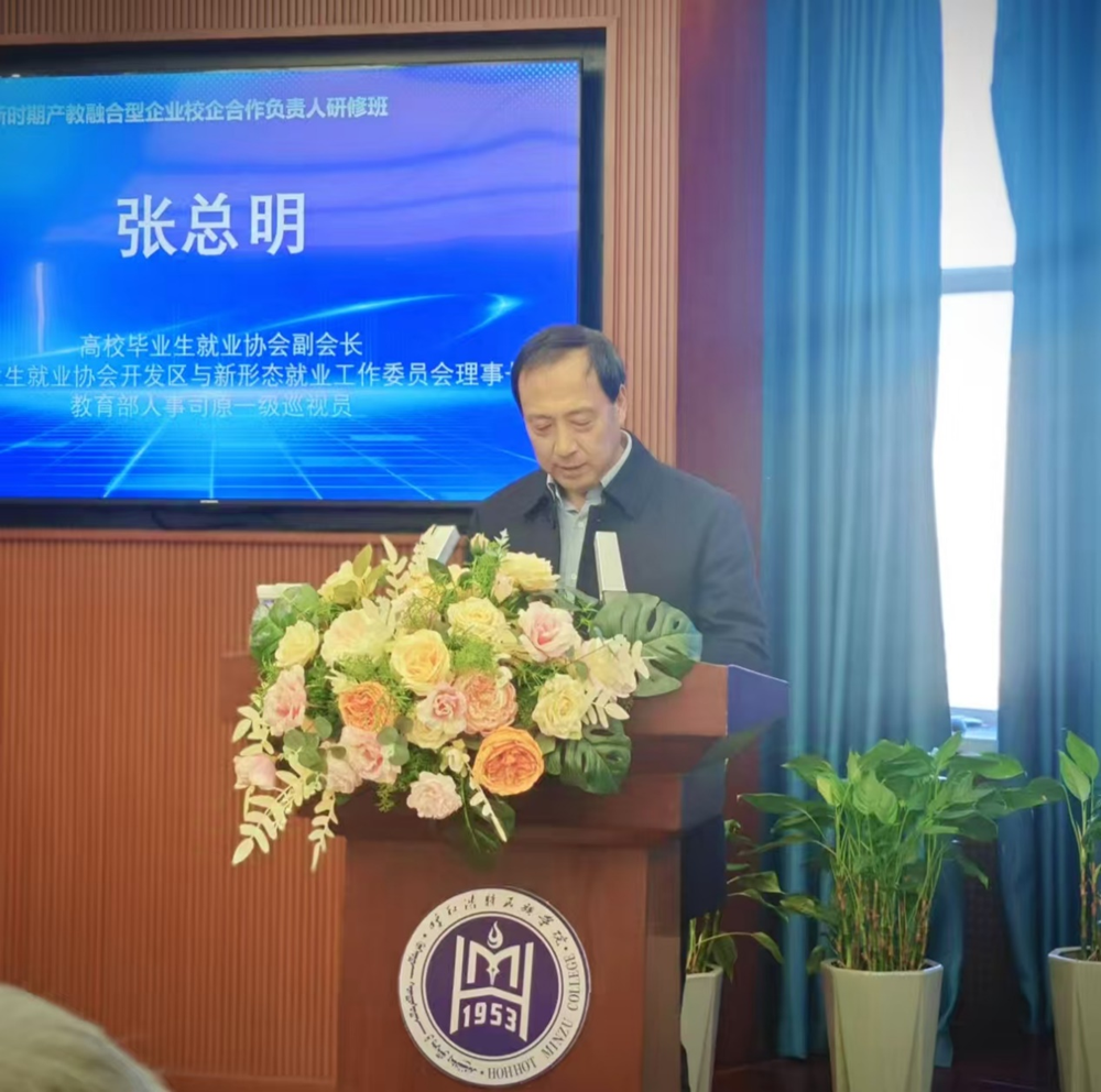 张总明在致辞中表示,本次研修班是贯彻落实党的二十届三中全会精神,全面贯彻党中央、国务院关于高校毕业生就业工作的决策部署的具体举措;更进一步推动了高校与企业之间的深度链接,为各校企合作负责人搭建了学习的平台,为激发更多创新思维与合作灵感,共同推动产教融合、校企合作向更深层次、更广领域发展提供了思路。