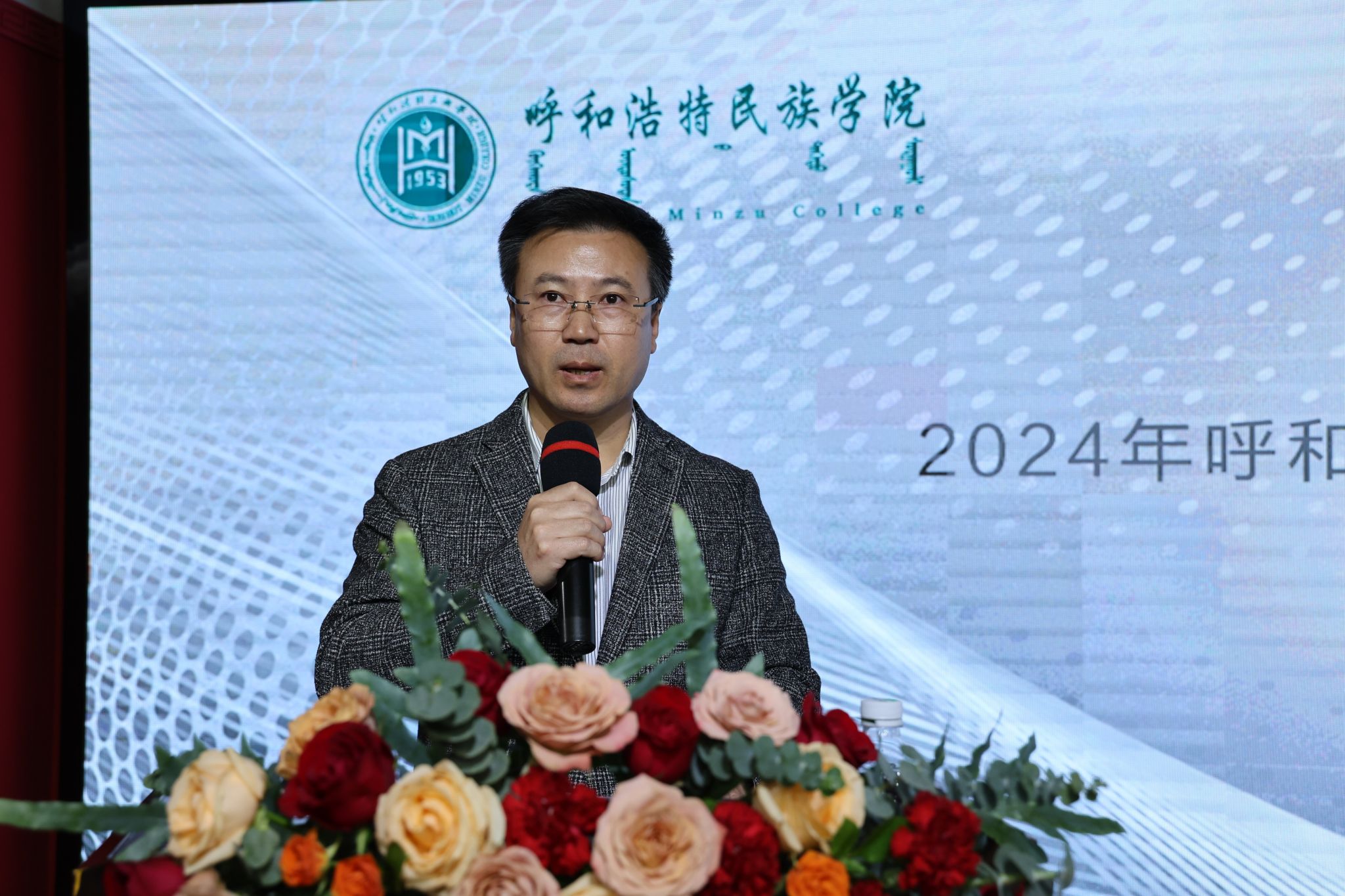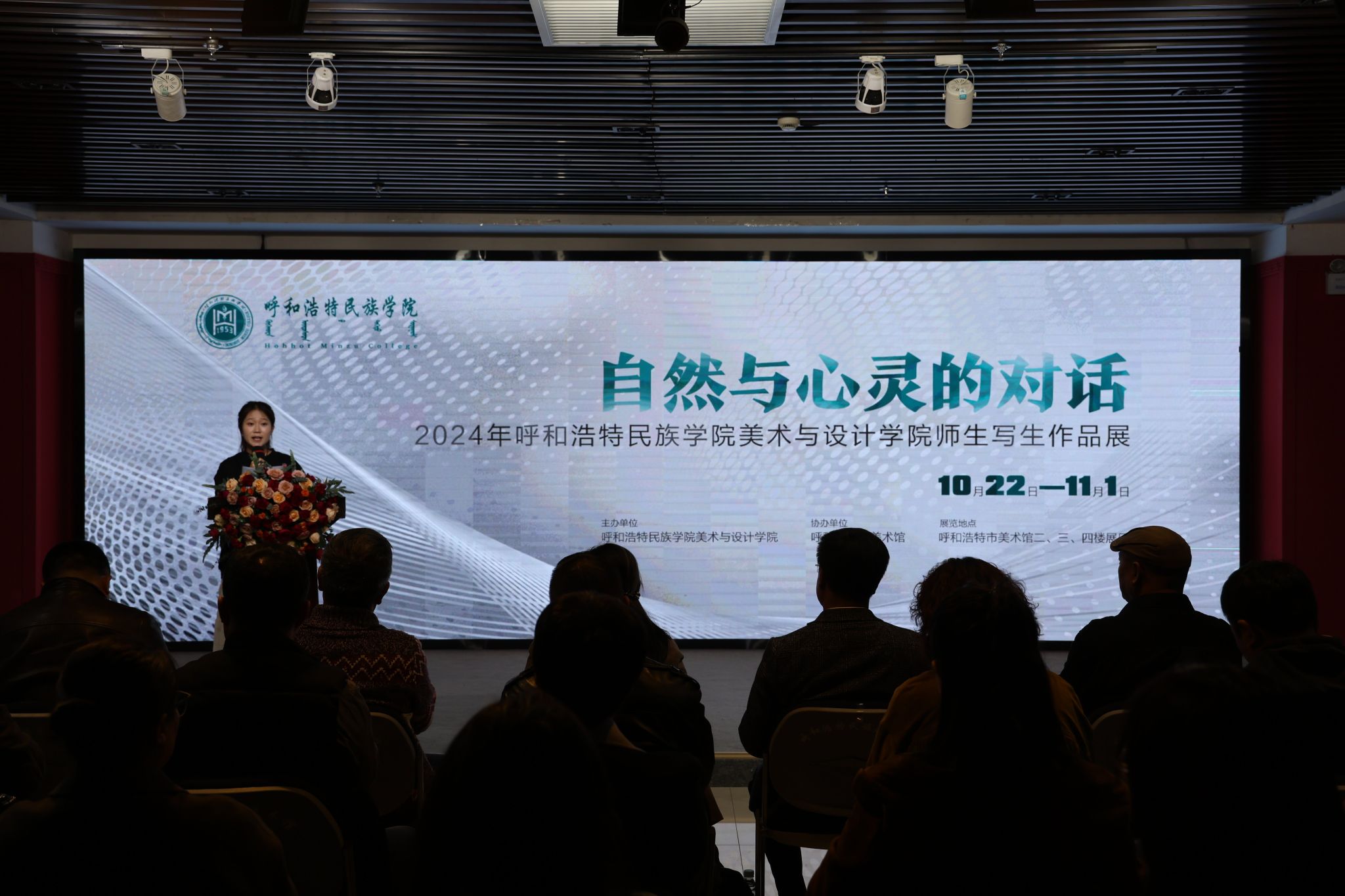 额尔敦布和在致辞中首先对呼和浩特市美术馆给予学校的大力支持表示感谢,并高度肯定赞扬了此次展览的艺术水准。他指出,写生创作是艺术教学的重要组成部分,是培养学生观察能力和创造力的有效途径。他希望美术与设计学院继续保持锐意进取的精神,深入推进教育教学改革,特别是在写生创作和艺术实践中,不断探索新的教学模式,激发学生的创造力和艺术潜力。他要求,美术与设计学院要始终坚守文化使命,注重培养学生的民族文化自信,为推动艺术教育事业的高质量发展做出更大贡献。