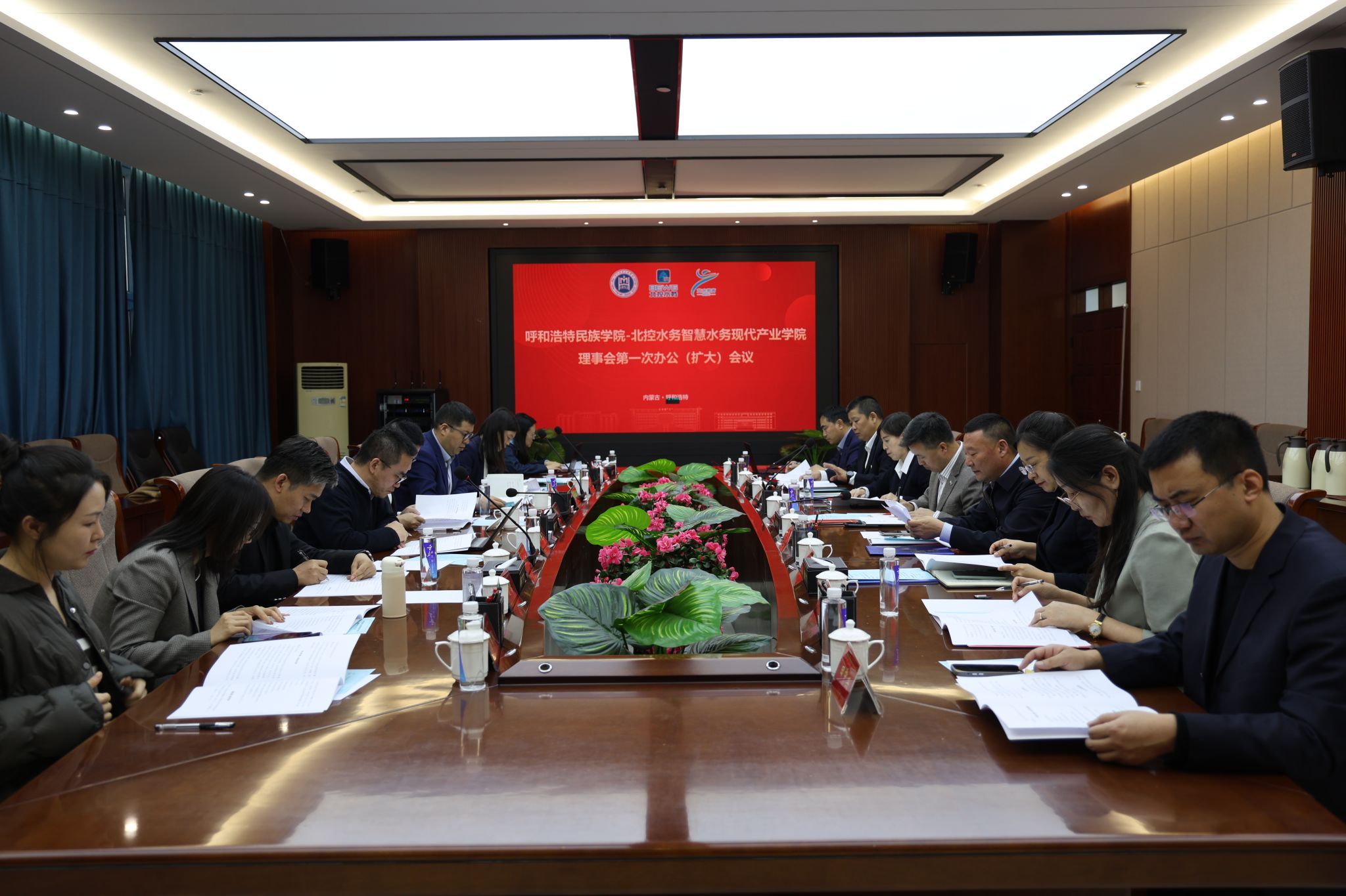 仪式结束后,现代产业学院在综合楼11楼会议室召开现代产业学院理事会第一次办公(扩大)会议。现代产业学院理事长额尔敦布和作关于现代产业学院章程起草的说明,理事会全体成员审议章程并表决通过。随后,执行院长李福全对产业学院发展规划进行汇报,与会成员就计划开展的师资队伍建设、新型教材开发、教学方法革新、科研水平提升等重点工作进行了交流研讨,并对产业学院未来建设发展提出建议。